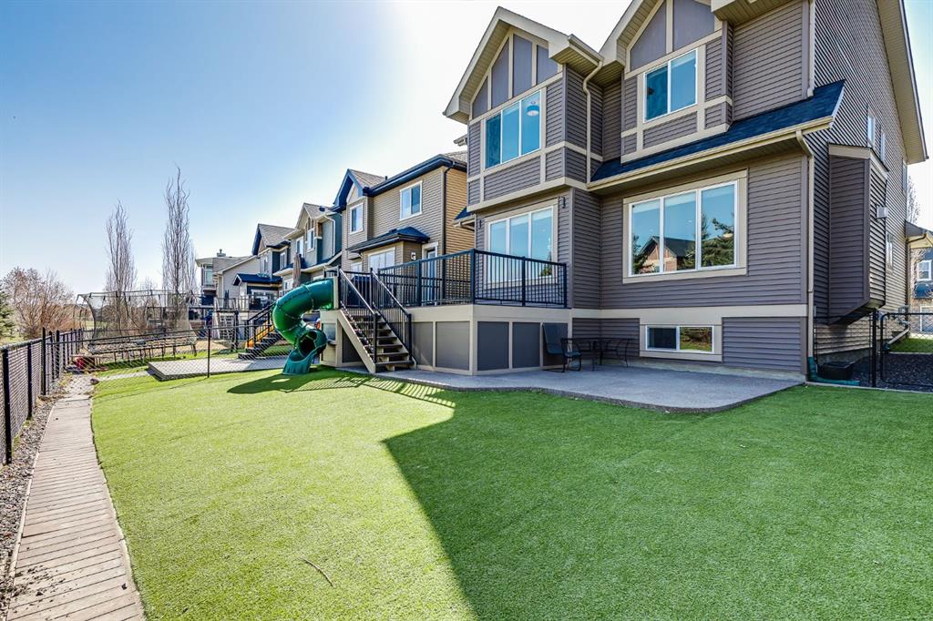 Welcome to this Highly Upgraded and Gorgeous Custom Built McKee Home that boasts 2680 sqft with a Fully Finished Basement providing a total of 3818 sqft of Developed Space. This Beautiful Home has 5 Bedrooms, and BACKS ONTO GREENSPACE and PATHWAYS that are a 1 min walk from the Coopers Crossing Elementary School. When you arrive, you will enjoy the Large Private Foyer with a seating bench, and will immediately notice the beautiful Travertine Tile Flooring, 9' Ceilings, and see that the Home is FRESHLY PAINTED. The Front Office is nicely situated so it is Private and has French Doors. You will be impressed by the Oversized Windows that welcome you into the Living Room and Kitchen area as they bathe the Home in Natural Light. The Living Room is quite spacious and has a Feature Wall the Oversized Stone Faced Fireplace. The Kitchen is a Chef's Dream and features Upgraded Appliances including a 5 Burner Induction Cooktop, Built in Wall Oven, Built in Microwave, Stainless Steel Refrigerator, Quartz Countertops, Tons of Full Height a Beautiful Cabinetry with lots of Pot and Pan Drawers, Undermount Lighting, Glass Tiled Backsplash, a Massive Island with seating, and a Huge Walk through Pantry. The Dining area can host a large table. The Mudroom has Built in Cabinetry and opens to the Oversized Garage. The Staircase with Wrought Iron Spindles lead you to the Upper Level that opens to a Massive Family Room with Vaulted Ceilings. The oversized Primary Suite is exquisite with Hardwood Flooring, Vaulted Ceilings, a Reading Nook with Built in Shelving and opens to the Ensuite. The Spa-like Ensuite has a Soaker Tub, Dual Vanities, and an oversized Shower Stall with 3 Showerheads to help you relax and enjoy your escape away. There is also a walk in closet. 3 Additional Bedrooms, Full Bathroom, and Laundry Room complete the Upper Level. The Lower Level was completed by the Builder to keep the decor and cabinetry the same and features 9' ceilings and a Fantastic Family Room with a Stone Feature Wall with a 120" Projection Screen and Media Equipment, Built in Cabinetry, Huge Dry Bar perfect for all those movie snacks and for storage. There is also a Games area, the 5th Bedroom and a Full Bathroom on the Lower Level. This Amazing Home is Air Conditioned, has a Brand New Furnace (Dec 2025) and Hot Water Tank (Oct 2025), Water Softener, Sonos System and Speakers throughout, and Vacuum System. The Exterior has a Large Upper Deck with BBQ Gas Line, a Slide for the kids, and has Composite Decking. The Lower Aggregate Patio extends under the enclosed Deck making storage easy and clean. The Home is surrounded by Pet Friendly Artificial Turf making it low maintenance for a busy Family. The Oversized Heated Garage is 19'1" x 25'.7". Coopers Crossing is the Premier Community in Airdrie. Watch your kids walk to school from the Home, and ride their bikes on the back pathway is a bonus. Ensure to watch the tour on MLS or Realtor.ca.