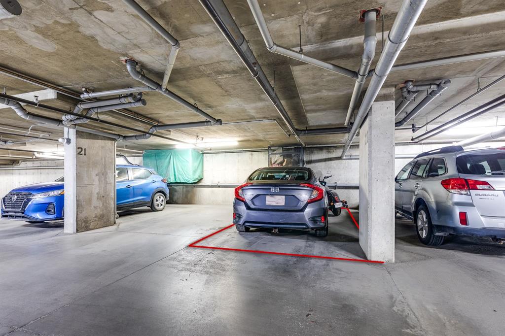 If you are looking for a home that is Furnished, Decorated, has Kitchenware, Underground Parking, and is Ready for a Quick Possession, then this is going to be perfect for you! This Lovely 2 Bedroom, 2 Bath, plus a Den Condo has been beautifully painted and decorated and features 9-foot Ceilings, Oversized Windows for lots of natural light, includes newer Luxury Vinyl Plank Flooring, Blinds, California closets and Phantom Retractable Screens. The Kitchen is a Chef's Dream featuring modern Cabinetry, Stainless Steel Appliances, Granite Countertops, and Large Island with lots of space for extra seating. The Living Room has a Large Window and opens to the West Facing Balcony. The Primary Bedroom has a fabulous walk thru closet with California Closet System for lots of storage, and has the 3 pc Ensuite with a large Shower Stall. Bedroom 2 is also quite spacious with a large closet. There is also a Large Den perfect for an Office or for Extra Storage with built in Cabinets, and a 4 Pc Bathroom. The TITLED UNDERGROUND PARKING Stall has a storage cage for your extra items. This great Condo is close to Restaurants, Transportation, Walking Trail around East Lake, is steps from Genesis Place, and has easy access to QE2. Come and view it today and let's make it yours.