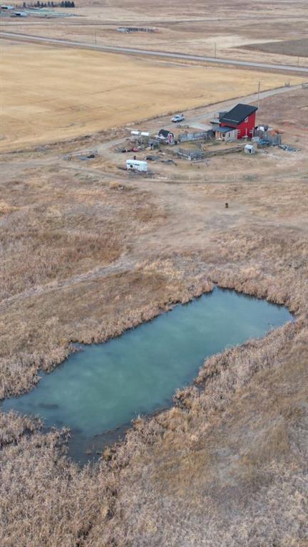 Outstanding investment opportunity OR build your dream home! Offering 31+ acres with panoramic mountain views. Power pedestal on property offering rare 400-AMP service—ideal for high-demand equipment, production, or future expansion. The property includes a steel-sided 22'x24' shop/cabin with car shelter. Currently, the shop has been partially developed into temporary living quarters with a kitchen, living room, 1 bedroom and one 3-piece bathroom. Use it to live in while building your new home or convert it back to a shop with a living space. Systems include in-floor heating supported by a mini-boiler on the main level, radiant electric heating on the upper level, compressor, pressure tank, and automated distribution controller. This infrastructure will reduce up-front capital investment for business start-ups. With hay/pastureland, and a large dugout, this parcel is perfectly suited for light industrial operations, equestrian/commercial boarding, crop or tree farming, greenhouse/agriculture production, or long-term land holding. Located just 30 minutes from Calgary, this is a strategically positioned acreage with multiple options for development.