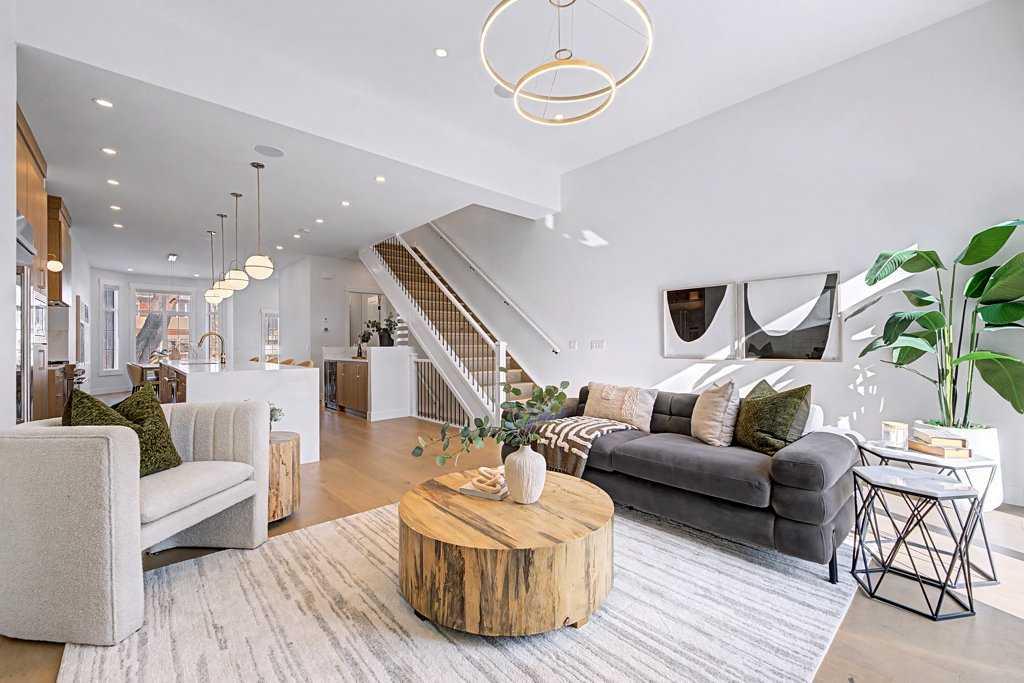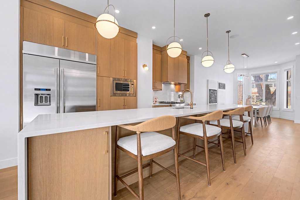 Absolutely STUNNING CURB APPEAL on this 2000 SQ. FT. two-storey (2800 total) in desirable ALTADORE! Classic FULL-BRICK facing & TURRETED roofline, BRICK WINDOW LEDGES, BLACK WINDOWS and MATCHING BLACK METAL ROOFING complete this gorgeous front elevation! Tell your guests to pull up to the nicest-looking house on the street & ring the doorbell! Come see 1935 43 Ave SW! Built in 2022, this home is beautiful and move-in ready! Mature trees grace this community and this front lawn, plus a paver patio, perfect for summer socializing with the neighbours. Step in the front door and you will instantly appreciate 10' CEILINGS, 8' interior doors and extensive ENGINEERED HARDWOOD flooring (running through the main level, upper level & both staircases)! Do you like to entertain? How about an ISLAND THAT IS ROUGHLY 16' LONG with stylish STONE COUNTERS, completed by 'WATERFALL' end panels! Plenty of room at the island, and in the SPACIOUS EATING AREA where you can comfortably seat the entire family! Fantastic kitchen, with perimeter CABINETS TO THE CEILING, ELEGANT CROWN MOULD DETAILING, UNDER-CABINET LIGHTING, plus STAINLESS-STEEL APPLIANCES including a fantastic SIX-BURNER GAS-STOVE for those delicious meals you like to serve. HUGE FRIDGE and BUILT IN MICROWAVE! The kitchen also features a CUSTOM VENTED HOOD over the stove, SOFT-CLOSE drawers, PULL-OUT SHELVES and an ADDED SERVING COUNTER with beverage fridge adjacent to the staircase. Enjoy a quiet evening in the living room with a cozy gas fireplace or step out the triple panel slider doors to your back deck for a summer BBQ (also accessible through the mudroom). When you park in the heated double garage - enter through the back mudroom (with BUILT-IN LOCKER units). For a game or an evening movie, head downstairs. The lower level has another bedroom and full bathroom, office space (with built-in shelving) and a bar area siding onto the rec room. IN-SLAB HEAT plus CENTRAL A/C keep you comfy all year-rpund! The upper floor of this beautiful home has three spacious bedrooms, laundry and two bathrooms. The primary bedroom is three steps up, giving separation from the rest of the upper level. It also boasts a spa-like ensuite, with deep soaker tub and fully tiled steam shower (with inset wall niche for organization), plus walk-in closet with organizers. You will love the south-facing balcony off the primary bedroom for a quiet start to your day, or some sunshine in the afternoon. This home is beautifully finished with 'rose-gold' accents on the plumbing and light fixtures. Generous built-ins and added cabinetry storage spaces throughout the home. Large windows for plenty of natural lighting. The community of Altadore borders east & south to vast greenspaces, connecting you to river pathways, Glenmore Athletic Park, Glenmore Aquatic & Fitness Centre plus reservoir pathways where you can walk or cycle as much as you please! Perfectly located and beautifully finished. Book your showing today!