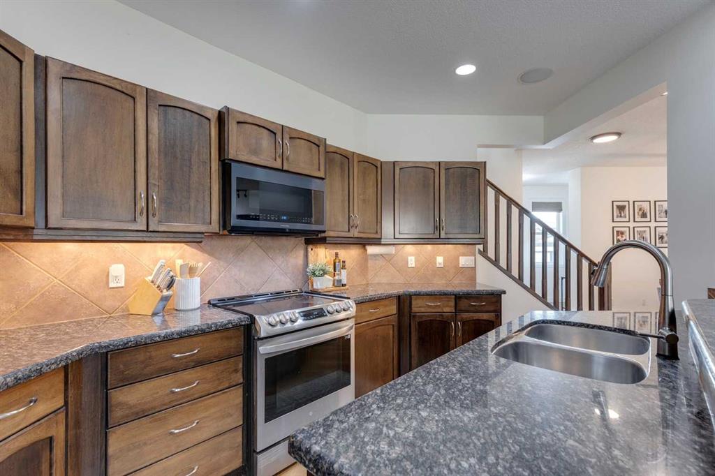 The fully developed basement offers even more living space, with a versatile recreation room that can be used as a home gym, playroom, or media room. A second stone-framed gas fireplace creates a warm, inviting atmosphere, while a fourth bedroom and full bathroom make this level ideal for guests or older children. Step outside to a truly exceptional outdoor living experience. The private backyard is a rare find, nearly twice the size of other yards in the area, and is the perfect oasis for relaxation and entertaining. A spacious deck overlooks beautiful tiered sandstone landscaping and mature trees. Situated on a quiet street, this home offers an unbeatable location just steps from walking paths and a playground. It's also within easy walking distance of excellent schools and a wide range of amenities. For a closer look at this stunning home, be sure to click the 3D virtual tour!