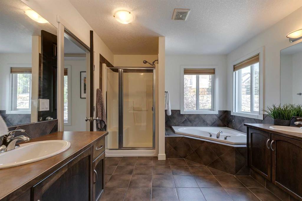 Upstairs, a spacious bonus room with vaulted ceilings and built-in shelving provides a versatile space for a media room or a quiet retreat. The primary suite is a true sanctuary, boasting a massive walk-in closet with custom built-ins and a spa-like ensuite bathroom. The ensuite features dual vanities, a large corner tub, a separate walk-in shower, and a second walk-in closet with new tile flooring. This floor also includes two more generous bedrooms, a full bathroom, and a conveniently located laundry room.