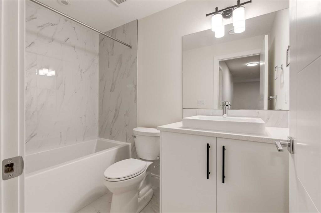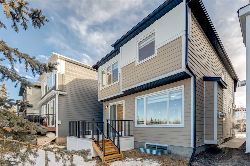 Open House 4-6PM, Friday, January 30, 2026. Huge Price Reduction! Experience refined modern living in this brand-new Truman-built “Forte” home, perfectly positioned in the prestigious community of Aspen Woods. With over 2,900 sq. ft. of fully developed living space, including a professionally finished basement, this west-facing property backs onto green space and offers both luxury and functionality in a truly move-in-ready residence. The main level is thoughtfully designed with 9 ft ceilings, elegant 8 ft doors, upgraded lighting, and luxury vinyl plank flooring that extends throughout the main floor and basement. A striking gas fireplace with a full-height marble surround anchors the open living area, creating a sophisticated focal point for everyday living and entertaining. At the heart of the home, the chef-inspired kitchen features full-height cabinetry, quartz countertops, a walk-through pantry, and an upgraded SS appliance package including a gas stove, chimney-style hood fan, and built-in microwave. The adjacent dining area opens onto a west-facing Duradeck-finished deck with a gas line, ideal for outdoor gatherings and sunset views. The upper level offers 4 generously sized bedrooms, a bright bonus room enhanced by dual windows, and a conveniently located laundry room. The primary suite is a private retreat, complete with a spa-like ensuite showcasing an upgraded glass shower, standalone soaker tub, and refined finishes. Upgraded carpeting adds warmth and comfort throughout the upper floor. A separate side entrance leads to the fully finished basement, which expands the home’s versatility with a spacious recreation room, wet bar, bedroom, and a full 4-piece bathroom—perfect for guests or multi-generational living. Luxury vinyl plank flooring continues on this level, maintaining both style and durability. Additional features include a finished garage, thoughtfully upgraded lighting, and Truman’s renowned build quality. Located close to top-rated schools, LRT access, shopping centres, downtown Calgary, and major transportation routes, this exceptional home delivers a seamless blend of elegance, comfort, and convenience in one of Calgary’s most desirable west-side neighbourhoods.