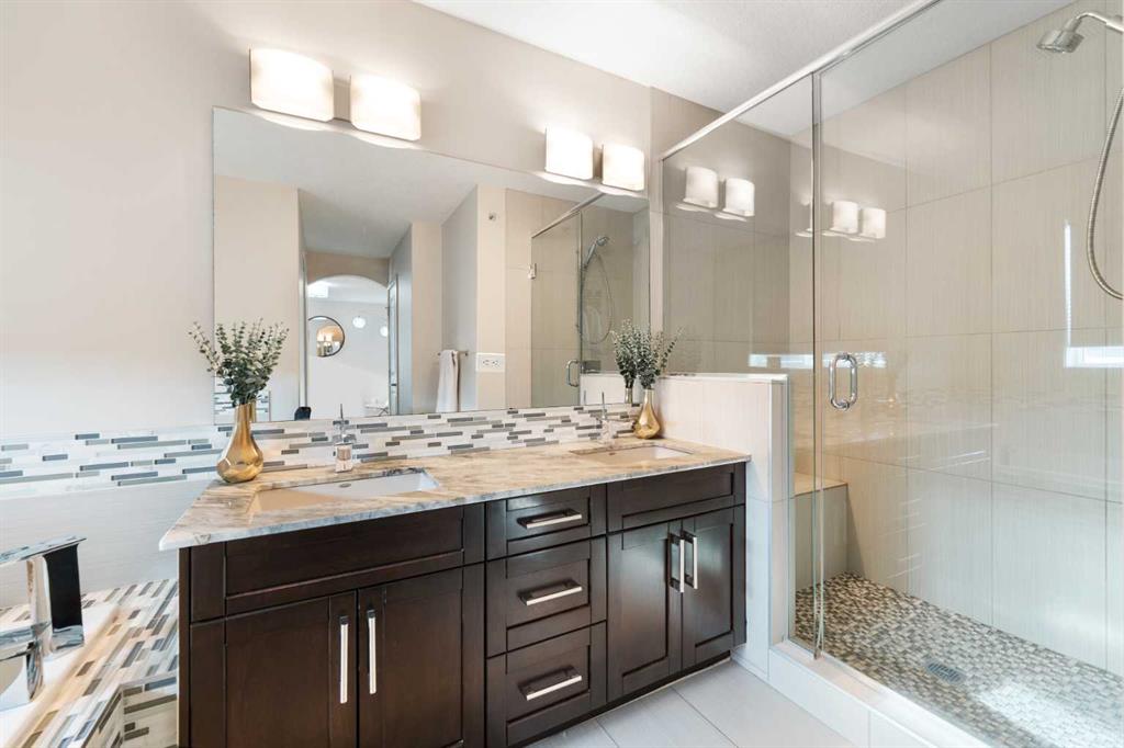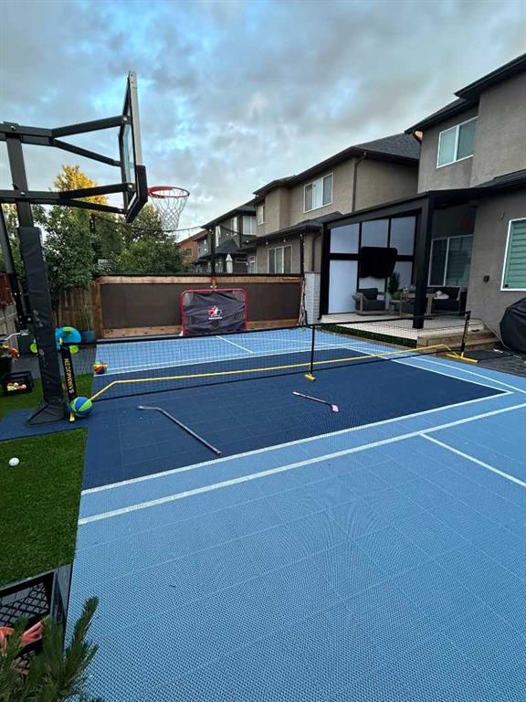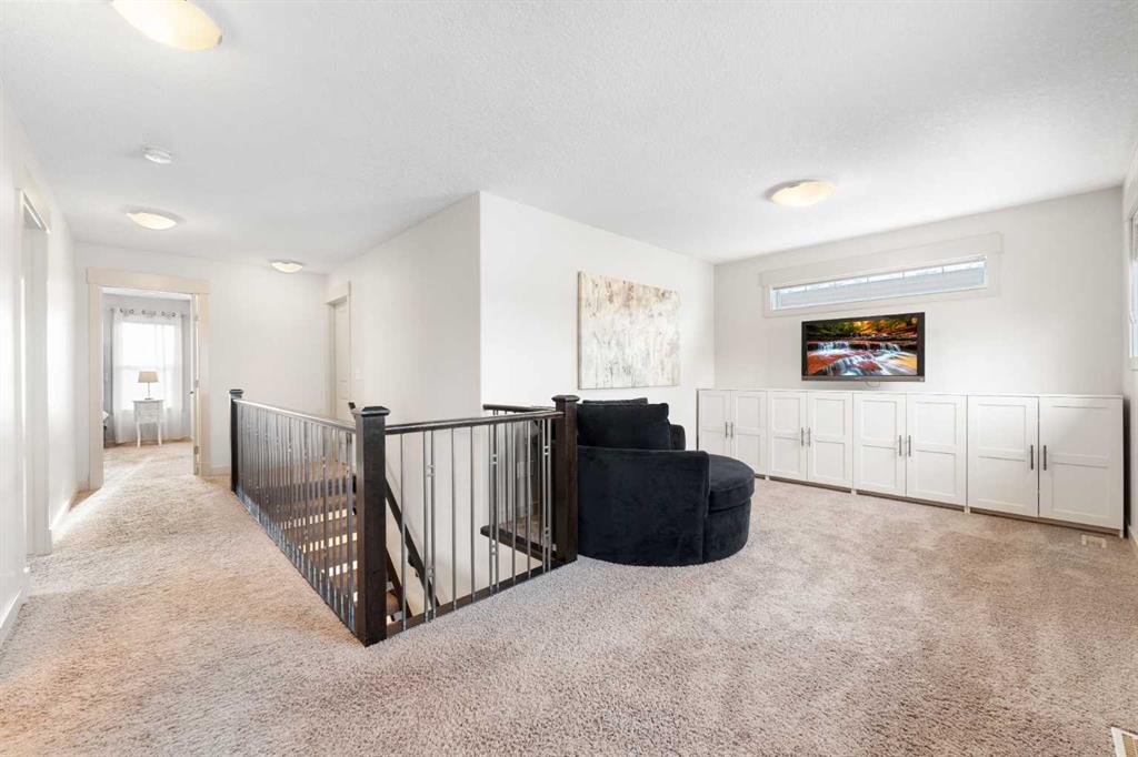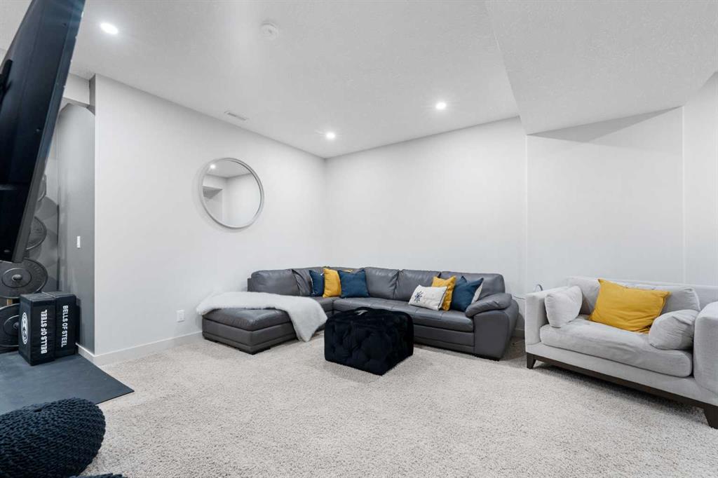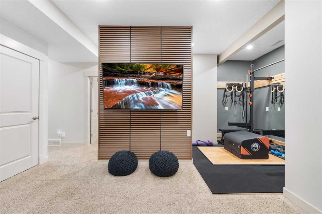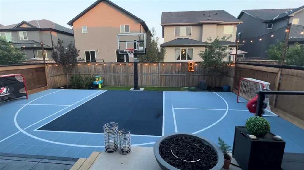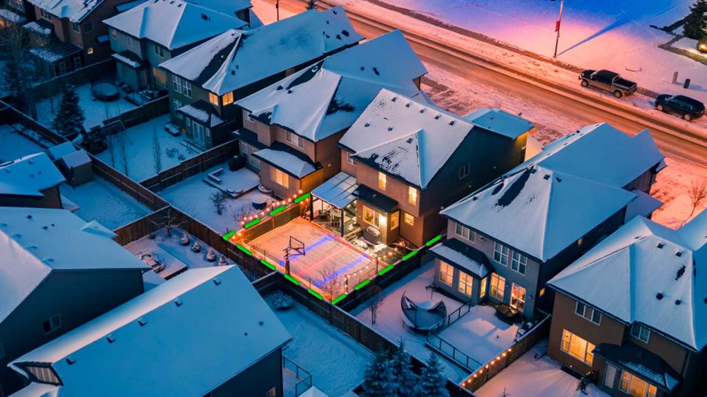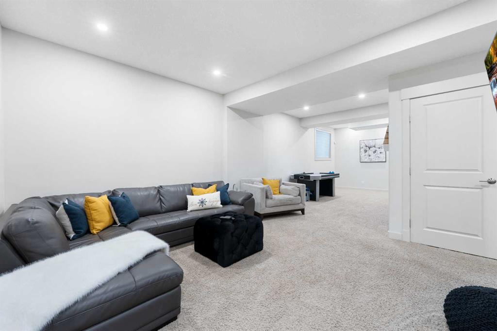 The home you’ve been waiting for in the community everyone wants to be in. Welcome to Aspenshire Estates, where this rare 4-bedrooms-up home is perfectly positioned on a sun-soaked, south-backing lot in one of Calgary’s most desirable westside communities. Walking distance to top-tier schools, Aspen Landing, dining, shopping, and everyday amenities, this is truly a home designed for modern family living. From the moment you enter, you’ll appreciate the thoughtful upgrades and timeless details, including rounded corners throughout, an open-riser staircase, custom built-ins, 9-foot basement ceilings, large basement windows, and an oversized garage. The kitchen is the heart of the home, showcasing stunning full-height white cabinetry, a large pantry, a beautiful central island, and seamless flow into the open-concept dining and living areas, anchored by a striking focal fireplace. A remodeled main-floor office with custom built-in desk space for three makes working or studying from home effortless, while a practical mudroom with added lockers keeps everything organized. The open-riser staircase leads to the upper level, where you’ll find three charming secondary bedrooms, a spacious bonus room with added, wall-anchored cabinetry, and a true primary retreat complete with a walk-in closet and a luxurious five-piece ensuite. The fully developed basement offers incredible versatility with a large 5th bedroom featuring a generous closet, a full bathroom, and a spacious open recreation area. Highlights include a built-in feature wall for TV and entertainment, a custom gym setup with 8mm rubber flooring, custom mirror, and anchored cedar wall beams, plus added wood shelving in the mechanical room for storage. Tucked under the stairs is a dream playhouse—a favorite for kids. Step outside to what may be every child’s dream backyard. A massive 38’ x 20’ poured concrete sport court seamlessly connects to existing stamped concrete and features customized lines for basketball and pickleball. Artificial turf has been added behind the court for low-maintenance play space. The backyard is further enhanced by a custom covered entertainment area, professionally constructed by Suncoast Enclosures using aluminum (anti-rust) framing and specialized panels. This space includes a built-in feature wall ready for a mounted TV with concealed power and a retractable shade for the south-facing exposure. Additional highlights include Gemstone exterior lighting on both levels of the front elevation, a fully finished garage with paint, shelving, sport lockers, and durable wall-panel storage systems (all included), central air conditioning, newer dishwasher, microwave, and hot water tank, and additional lockers added to the mudroom. This is truly where you want to raise your family—surrounded by some of the city’s top schools, close to Westside Recreation Centre, with easy access to Stoney Trail and only 20 minutes to downtown. A rare opportunity to own a thoughtfully upgraded family home.