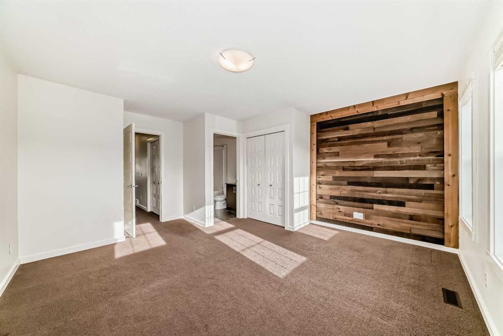 Welcome home to this amazing unit that is literally walking distance to ALL the areas well thought out amenities! You can walk to the LAKE, the HOSPITAL, SETON shopping plaza all within 5 mins! As you enter this home you are going to LOVE the feature wall and the open concept floor plan giving this a bright, open airy feeling! There is plenty of room in the living area for your furniture, there are speakers built in and next to the living room there is a dining space you can fit your table into easily! The kitchen has quartz countertops, kitchen island, stainless steel appliances, tiled backsplash and views out to the back yard! The main floor also features laminate flooring, a half bathroom, storage, mechanical room and upgraded lights! Upstairs you have 2 large bedrooms that BOTH have ensuite bathrooms! One bedroom has a great wood feature wall and the other (larger) bedroom has a large wall unit that is perfect for storage :) AND in the hallway there is a hidden stairwell that leads you up to a MASSIVE attic storage room that is big enough to walk around in and hold all of your extra items! This unit also comes with TWO parking stall right outside your front door, a private fenced back yard and a well managed complex with great neighbours and low condo fees! Auburn Bay has it all - easy access to amenities, major roadways, schools, shopping, off leash dog park, YMCA, playgrounds, walking paths and SO MUCH MORE!
