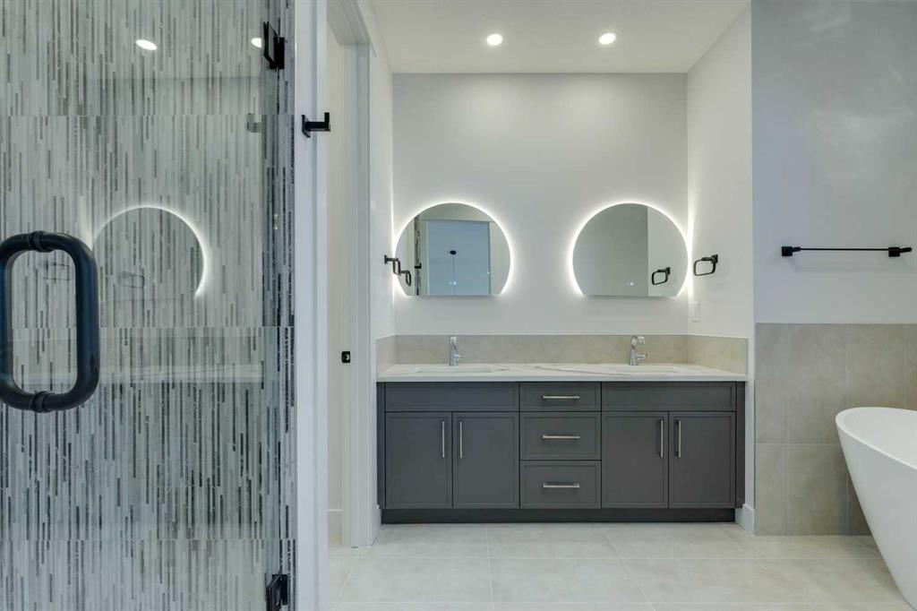 *** SEE THE VIRTUAL TOUR *** Welcome to this stunning brand-new side-by-side duplex located in the desirable community of Banff Trail. With its stylish mixture of Stucco and Hardie board exterior , a concrete walkway leading to the house, along with concrete stairs at both the front and back, a spacious concrete patio in the backyard and composite WPC fence between the two houses. Step inside to find a welcoming foyer that opens into a large dining area. The modern kitchen is equipped with sleek cabinetry, stainless steel Bosch appliances, and a luxurious granite leather island and countertops. The large and spacious living area with a large window overlooking the sunny backyard. The main floor also includes a beautiful powder room and a convenient mudroom leading to the backyard. Upstairs, you'll discover a generously sized master bedroom complete with a walk-in closet and a stunning modern ensuite bathroom featuring a double vanity, standalone tub, tiled floors, quartz countertops, and a beautifully tiled shower. Additionally, the second floor hosts two other spacious bedrooms and a cozy loft, perfect for an office space. The laundry room is conveniently located upstairs, alongside the main bathroom, which also boasts a double vanity, tiled floors, and quartz countertops. Hardwood flooring graces the main floor and the hallways of the second floor, including the master bedroom. The basement features a separate entrance leading to a legal suite with two bedrooms, a separate furnace, and LVP flooring throughout. This suite includes a full kitchen with quartz countertops and stainless steel appliances, as well as a complete laundry setup, making it an ideal income generator while you enjoy luxurious living upstairs. Additional highlights include a double detached garage, 10-foot ceilings on the main floor and 9-foot ceilings on the second floor and basement, two furnaces, a 75-gallon hot water tank, rough-ins for AC and central vacuum, and soundproof insulation and a soundbar in the party wall.
