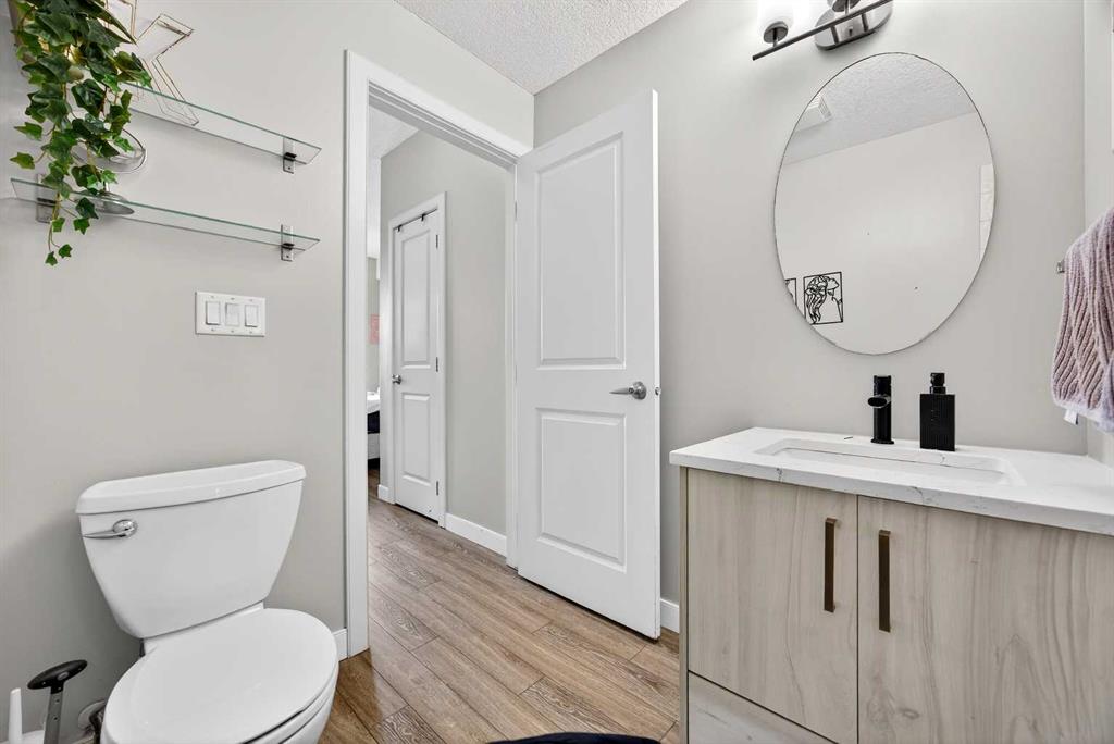 The thoughtfully designed interior showcases contemporary finishes throughout, including two-tone cabinetry, luxury laminate plank flooring, quartz countertops, a granite composite undermount sink, stainless steel appliances, and an open-concept layout that maximizes comfort and functionality.