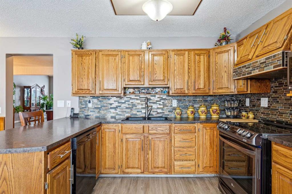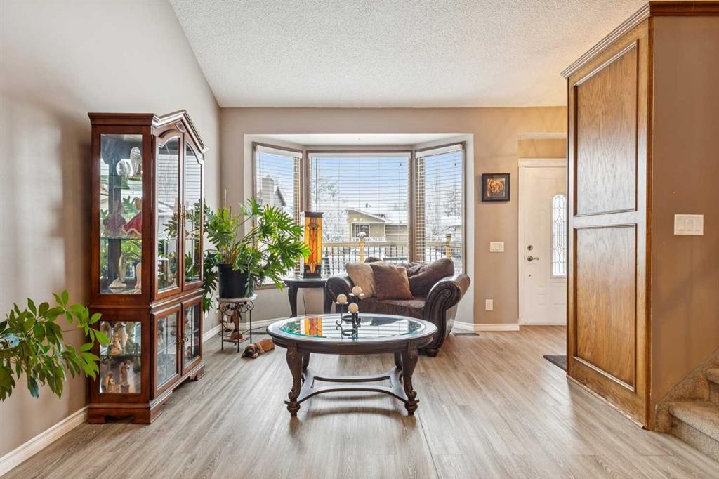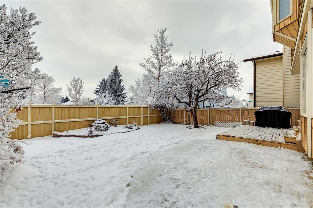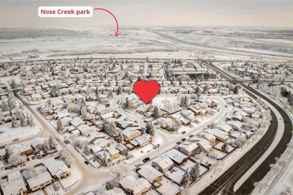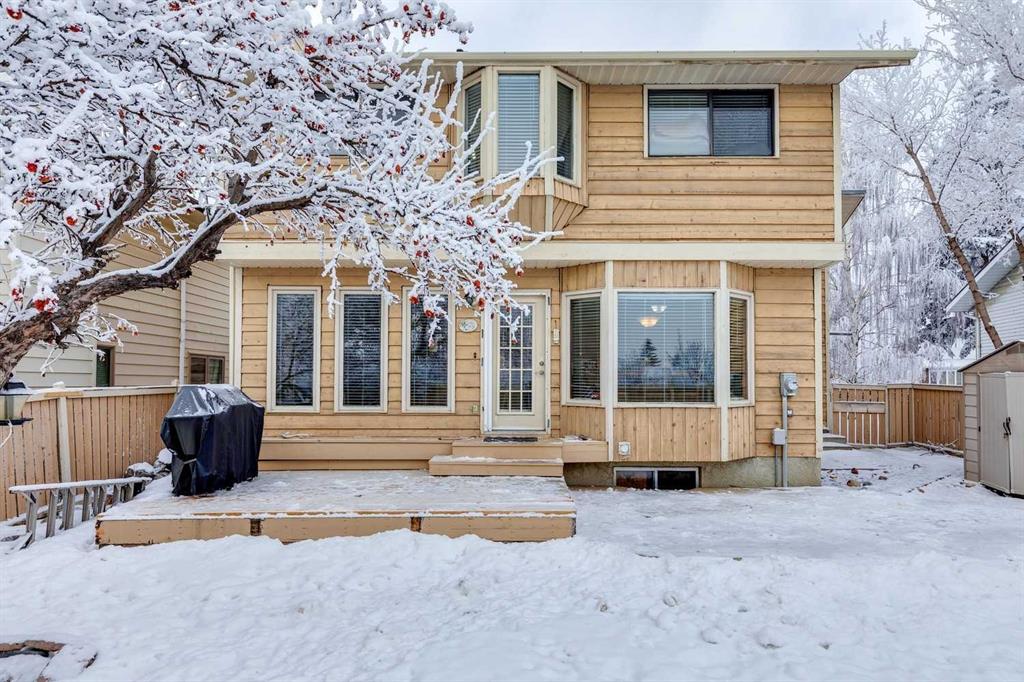 Welcome to this beautifully maintained 2-storey home backing directly onto greenspace in the desirable community of Beddington Heights, offering over 2,300 sqft of fully developed living space and an exceptional combination of privacy, comfort, and family-friendly living. Enjoy your morning coffee on the charming front porch. The bright and welcoming main floor showcases vaulted ceilings with skylights, updated luxury vinyl plank flooring, a spacious living room, and a formal dining area that flows seamlessly into the heart of the home. The well-appointed kitchen features an abundance of cabinetry, island seating, and a sunny eating nook set within a bay window overlooking the beautifully landscaped backyard, while the adjacent family room is anchored by a charming brick wood-burning fireplace, creating the perfect space for everyday living and cozy evenings. Completing the main level are a convenient 2-piece bathroom, main-floor laundry, and direct access to the double attached garage, which is insulated, drywalled, and heated (overhead door is approximately 2 years old). Upstairs, you will find 3 generously sized bedrooms and 2 full bathrooms, including a spacious primary retreat with walk-in closet and a large ensuite complete with a separate shower and relaxing soaker tub, all enjoying tranquil views of the greenspace behind. The fully developed basement is an entertainer’s dream, offering a large recreation room with custom western-style window shutters, a western-inspired wet bar with sink, and a pool table with accessories included, creating a true pub-style atmosphere ideal for hosting family and friends, along with a bathroom rough-in, cold room, and plenty of storage. Step outside to the fully fenced backyard, beautifully landscaped and featuring a lovely crabapple tree, a two-tiered deck ideal for summer BBQs and outdoor dining, and a rear gate in the back fence providing direct access to the greenspace behind the home. Ideally located in Beddington Heights, this home is surrounded by excellent amenities including nearby schools, playgrounds, walking paths, and shopping, with many parks within walking distance, easy access to Deerfoot Trail and Stoney Trail, and close proximity to public transit, recreation facilities, and everyday conveniences. This is a rare opportunity to enjoy a spacious family home in a well-established Calgary neighbourhood while backing directly onto greenspace, offering privacy, lifestyle, and long-term value.