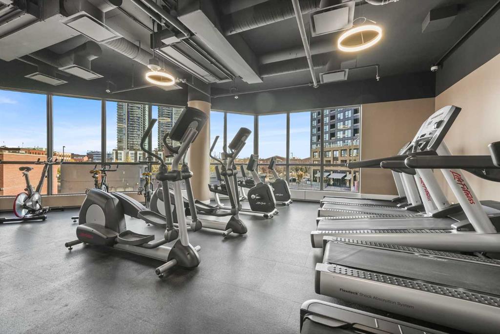 Welcome to Keynote 1, where urban sophistication meets everyday convenience. This freshly painted 2 bedroom, 2 bathroom corner unit offers an abundance of natural light plus north and west views from not one, but two private balconies. With its open concept design, lofty ceilings, and warm cork flooring, the home feels both modern and inviting from the moment you step inside. The kitchen is a true centerpiece, tastefully finished with granite countertops, a generous island with eating bar, stainless steel appliances, and ample cabinetry that makes both cooking and entertaining a pleasure. Just beyond, the dining area provides plenty of room to host family and friends, while the living room is framed by floor to ceiling windows that capture the city skyline and open directly onto one of the balconies—perfect for enjoying morning coffee or the twinkle of city lights. The primary suite is a private retreat, complete with its own balcony access, a walk in closet, and secluded 4 piece ensuite. A second bedroom and full 3 piece bath offer comfort and flexibility for guests, roommates, or a home office. Additional conveniences include in suite laundry, a titled underground parking stall, and a titled storage locker. Life at Keynote 1 extends far beyond the walls of your condo. Residents enjoy access to a fully equipped fitness centre, a stylish recreation and party room, a large outdoor patio with BBQ and seating areas, two guest suites, and secure bike storage. With Sunterra Market located right on the main floor, daily errands are effortless. The location is second to none—just steps from the energy of 17th Avenue, Stampede Park, public transit, and Calgary’s downtown core. Whether you’re looking for vibrant nightlife, cultural events, or a quick commute, everything is at your doorstep. This move in ready condo combines style, comfort, and convenience in one of Calgary’s most desirable downtown addresses. Immediate possession is available—your urban lifestyle awaits.