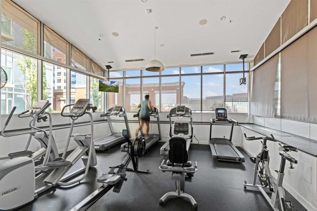 Direct, separate entry patio access to a private terrace! The Vetro building is designed for elevated, carefree living, offering exceptional amenities. Your new unit is literally a 20 foot “hike” to a vast array of common area amenities! These include a two-level fitness centre with weight and cardio equipment, a hot tub, steam showers, a private theatre room, a stylish social and games lounge with a pool table and fireplace, and a tranquil outdoor terrace with direct access from your patio door. Topping off this home is a secure, titled underground parking stall and an assigned storage unit, further adding to the comfort and convenience you’ll experience as its newest owner. Experience sublime urban living in this bright and spacious 1-bedroom, 1-bathroom condo located in Calgary’s dynamic Beltline District. Inside, the open-concept layout flows seamlessly from room to room, enhanced by warm laminate flooring throughout the living and bedroom areas. The modern kitchen features tile flooring that is both stylish and functional; an ideal space for cooking, gathering, and entertaining. High ceilings, accompanied by oversized living room windows and massive floor-to-ceiling windows in the bedroom, fill the home with natural light, while central air conditioning provides year-round comfort. The spacious bedroom includes a large walk-through closet that connects directly to the well-appointed cheater ensuite bathroom, offering a seamless blend of privacy and practicality. A separate entry off the living room gives you access to your private elevated patio with a gas BBQ hookup. Additionally, this condo comes equipped with a stacking in-suite laundry combo, further enhancing the convenience of this home. Located just steps from Shoppers Drug Mart at the base of the building and within easy walking distance to the new Arena District, LRT transit, 17th Avenue, the Stampede Grounds, the BMO Centre, New Scotia Place Event Centre, Lindsay Park, and the MNP Community & Sports Centre, this condo places you at the heart of Calgary’s most vibrant and convenient urban experiences. Whether you’re a young professional, first-time buyer, savvy investor, or looking to downsize without compromise, this home offers an unbeatable combination of comfort, lifestyle, and location. Don’t miss your chance to call this exceptional property home. Book your private showing today!