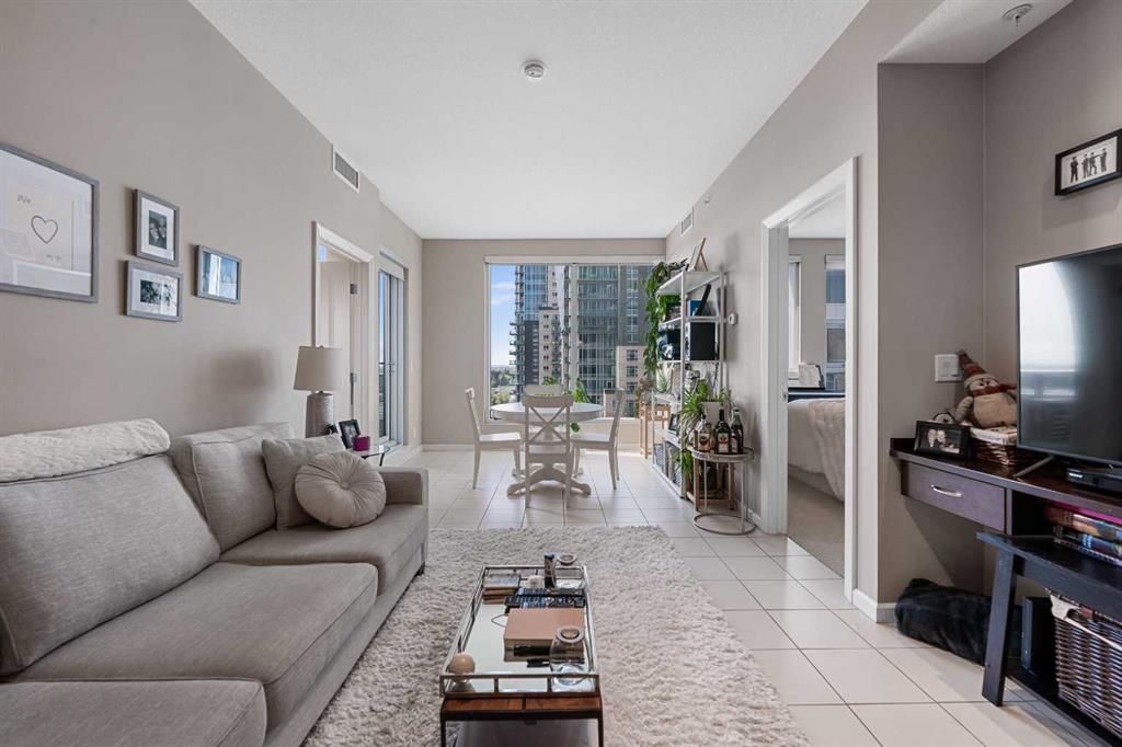 Welcome to the epitome of urban living in the heart of Calgary’s vibrant Beltline! This beautifully maintained 17th-floor unit in the sought-after Nuera building offers a seamless blend of style, comfort, and convenience with concierge service and first-class amenities right at your door. Step inside to a bright and open floor plan, where the sleek kitchen is equipped with quartz countertops, a modern tile backsplash, and stainless steel appliances ideal for cooking, entertaining, or simply enjoying your morning coffee. The spacious living area features durable tile flooring throughout, allowing you to easily customize your interior style while benefiting from low-maintenance design. Expansive floor-to-ceiling windows bathe the space in natural light year-round, while your private balcony offers sweeping views of Victoria Park and the Stampede Grounds the perfect place to unwind after a busy day. The primary bedroom is your personal retreat, complete with a walk-through closet and a 4-piece ensuite, providing a serene escape for rest and relaxation. A generous second bedroom and second full bathroom make this home versatile ideal for guests, a home office, or creative space to suit your lifestyle. Additional highlights include: Large titled underground parking stall conveniently located just steps from elevator access, storage locker for added convenience, on-site fitness centre take care of your health and wellness without ever leaving the building, and in-suite laundry, secure fob access, and professionally managed condo. Whether you're a young professional, an investor, or someone looking to embrace carefree urban living, this home offers everything you need and more in a prime downtown location just steps from transit, 17th Avenue, shopping, restaurants, and the Saddledome. Welcome to your next adventure in modern city living.