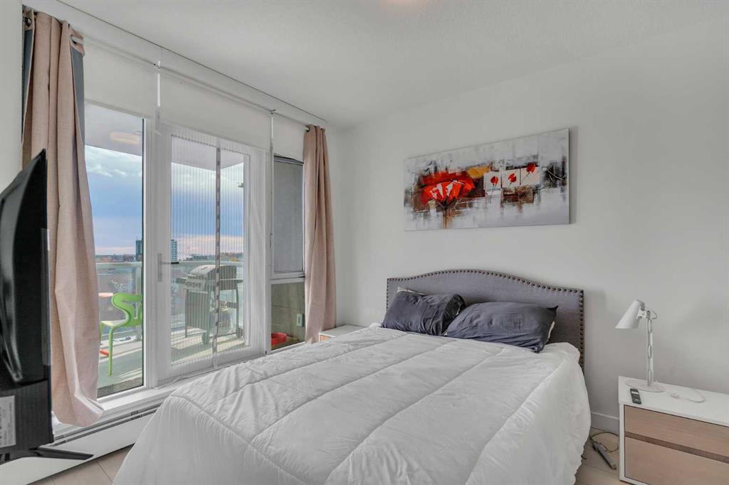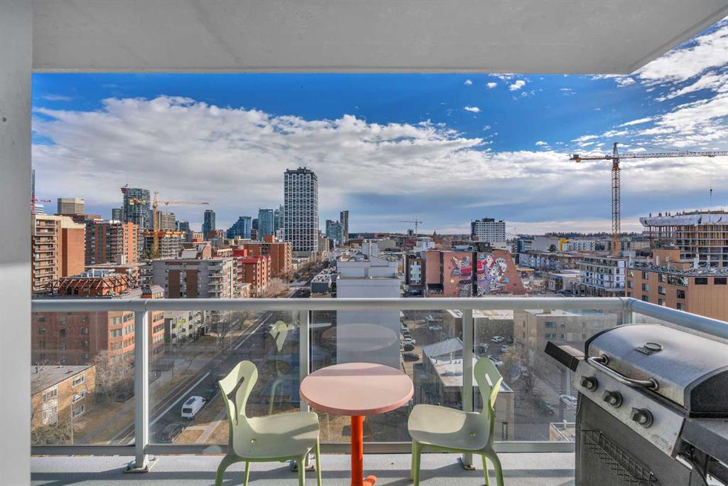 Step out onto the 25-foot-wide balcony, your own private outdoor retreat. With room for multiple seating areas, this space is perfect for relaxing, entertaining, or simply enjoying the sights of the city. Whether it’s morning coffee or an evening glass of wine, this view never gets old. Inside, the kitchen is both stylish and functional, featuring stainless steel appliances including a five-burner gas range and built-in oven, quartz countertops, extended soft-close cabinetry, under-cabinet lighting, and an island with seating for four. The open layout flows easily into the dining and living areas, creating a warm and social space that feels just right for everyday living or hosting friends. A den just off the living room offers flexibility — use it as a dining nook, home office, or reading corner with a view. The bedroom also enjoys those full-height windows, so you can wake up to Calgary’s skyline every morning. The four-piece ensuite features heated floors, a deep soaker tub, and modern finishes, while the walk-in closet provides plenty of storage. A guest powder room and in-suite laundry add extra convenience. This home also comes with a heated underground parking stall, private storage locker, and access to great building amenities including a concierge, bike-share program, and a residents’ lounge. Located right in the 17th Avenue Entertainment District, you’re steps away from groceries, fitness studios, coffee shops, restaurants, and nightlife — everything you need is right outside your door. If you’re looking for a bright, well-designed home in a vibrant downtown location, this is one you don’t want to miss. Welcome to Smith — the perfect mix of comfort, convenience, and city living.