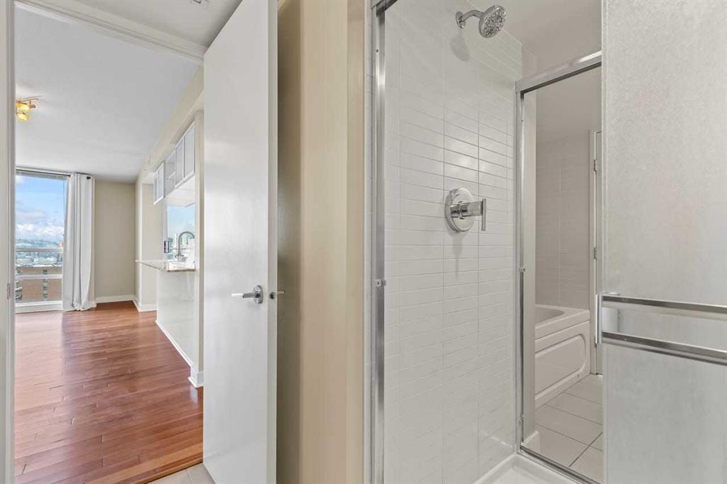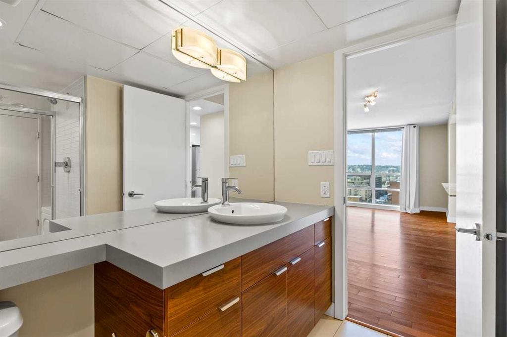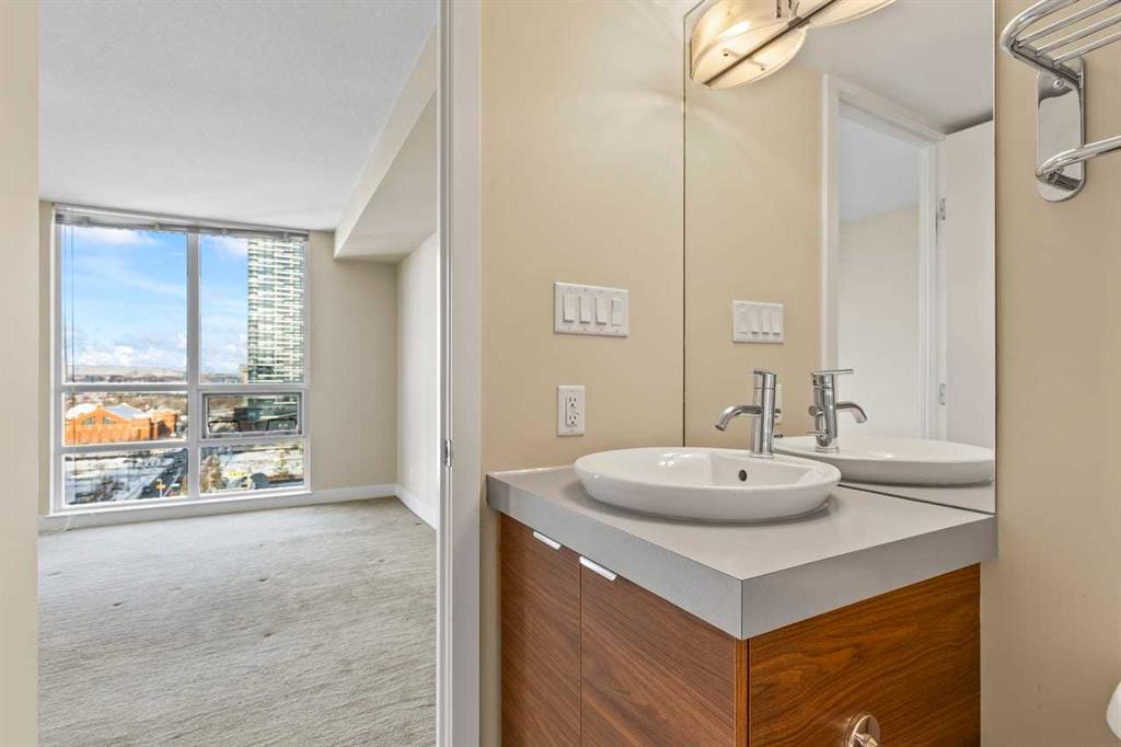 Experience refined living at Stella in this highly desirable 2-bedroom + den, 2-bath residence offering breathtaking, unobstructed downtown views from an exceptional 12th-floor corner location with floor-to-ceiling windows that flood the home with natural light. Concierge service welcomes you at the lobby, while a generous foyer leads to contemporary hardwood and tile flooring, complemented by warm, luxurious carpet in the bedrooms and custom California Closets throughout. The chef-inspired Ramsay kitchen overlooks the great room and features stainless steel appliances, high-gloss white cabinetry, granite countertops, and a large breakfast island, ideal for entertaining and everyday living. Recently replaced ST fridge and insuite stacked washer and dryer set are a true bonus. The primary and second bedrooms are thoughtfully separated by a private den with pocket-door access, and the well-designed ensuite offers a walk-through shower with convenient access to both bathrooms. Enjoy sweeping views of the Bow River Valley to the west, Nose Hill to the north, and downtown to the east, with a west-facing balcony showcasing stunning mountain vistas. Additional highlights include in-suite laundry, a heated underground parking stall (#207 on P2), a separate storage locker (#28), access to a fitness center and guest lounge, and excellent transit connectivity to all areas of the city - contemporary design and vibrant urban living truly define this exceptional home. Pets are allowed with approval. Drive buy 1110-11 St S.W. for your private showing