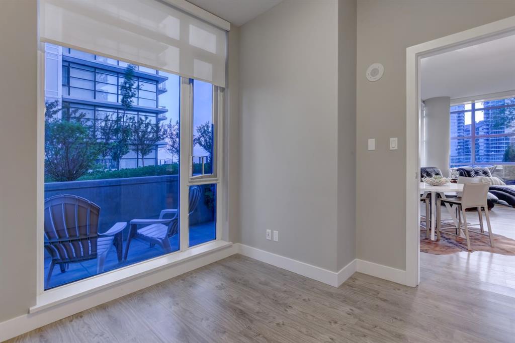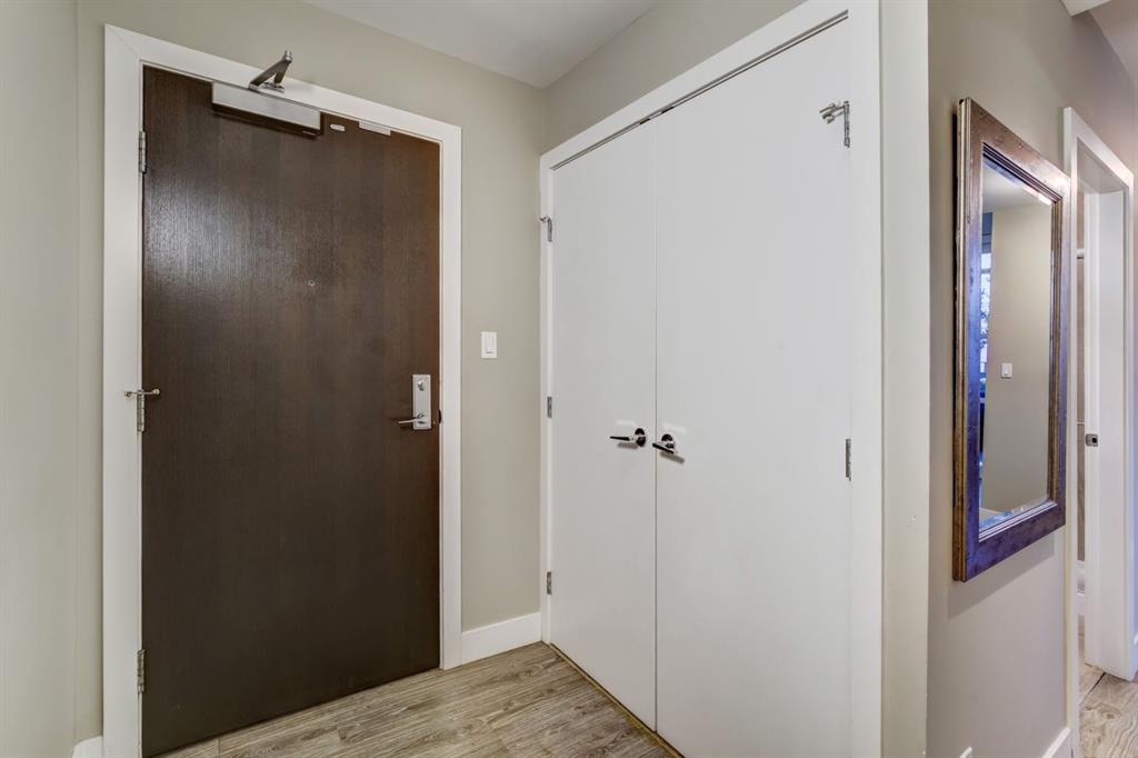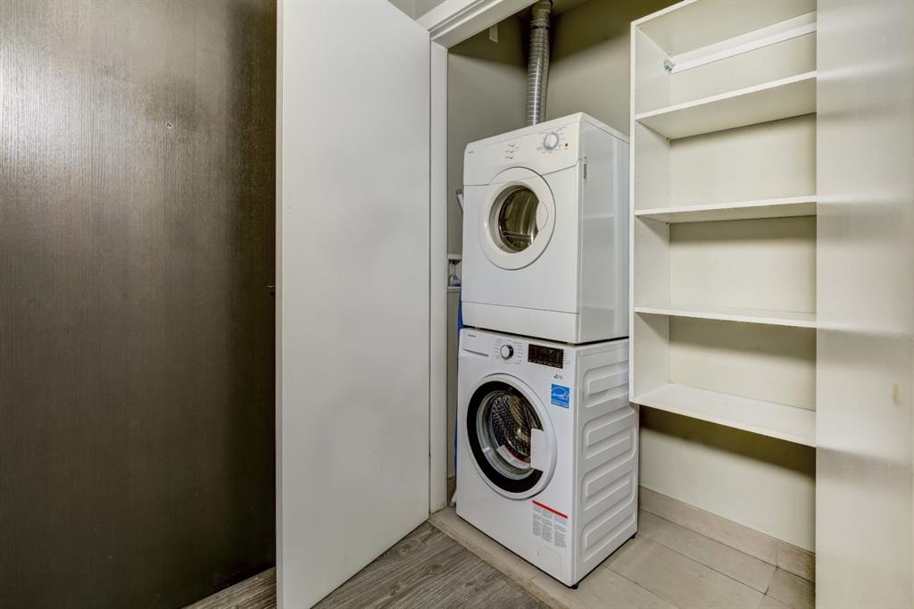 Love downtown living but craving outdoor space? This stunning SW corner terrace unit offers the best of both worlds - a rare, wrap-around 685 sqft terrace with breathtaking views of the city skyline. Located on the 7th floor, this bright and spacious corner layout features 10’ ceilings and expansive floor-to-ceiling windows that flood this unit with natural light and truly bring the outdoors in. The sleek modern kitchen is thoughtfully designed with built-in appliances, quartz countertops, and a convenient microwave shelf to keep your counters clear and functional. The primary bedroom includes upgraded custom closet built-ins to maximize storage, along with a 4-piece ensuite for added comfort. A true bonus: titled indoor tandem parking, rarely found in the building, ideally situated on the 4th level right next to the elevator doors (and only 3 floors down the stairs), with natural light streaming into the parkade through shaded windows. Perfect for the urban professional, you’re just steps from the Saddledome, downtown, C-Train, river pathways, shops, restaurants, and all amenities. Residents of The Guardian enjoy premium amenities including concierge service, a fully equipped fitness centre (directly below unit), social lounge, workshop, visitor parking, and a beautifully landscaped garden terrace with BBQs. With stairs conveniently nearby, you’ll never have to wait long for an elevator. Don’t miss this rare opportunity to enjoy downtown living with exceptional outdoor space!