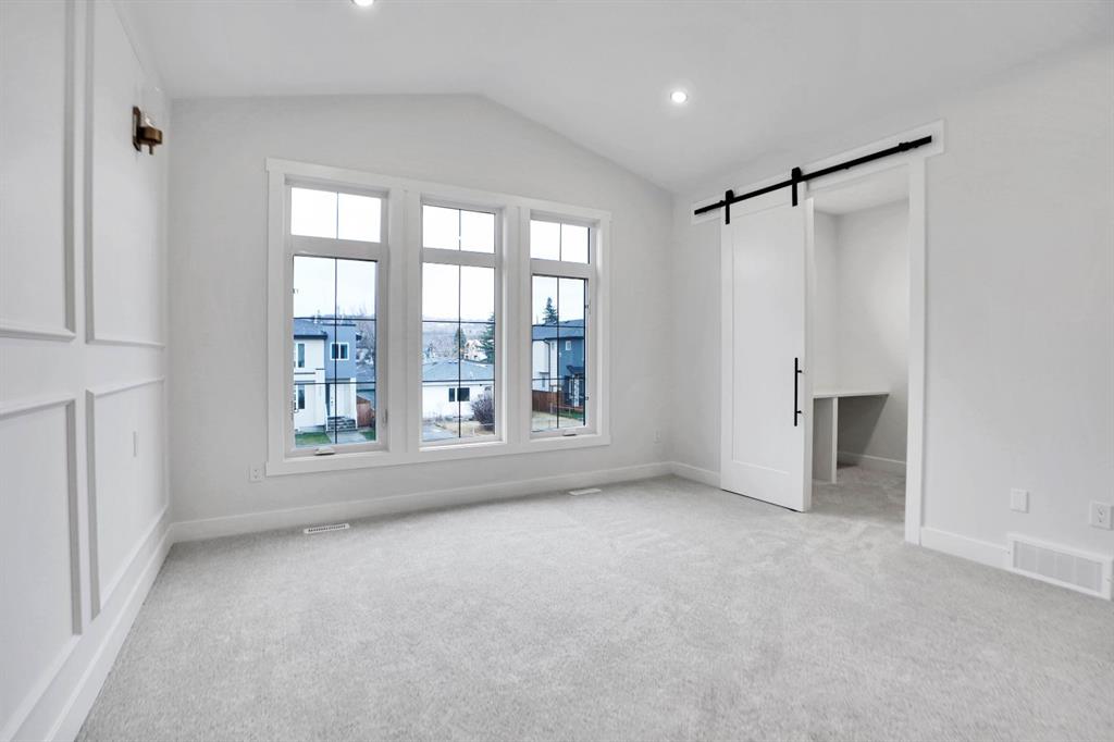 Brand-New Luxury Infill in Bowness | Legal 2-Bedroom Suite | South Backyard Luxury + Income Potential + Lifestyle – All in One Home. Move right in to this stunning, never-lived-in luxury infill featuring a bright open floor plan, designer finishes, and a legal 2-bedroom basement suite for rental income or multigenerational living. Enjoy a chef-inspired kitchen with quartz countertops, warm wood accents, premium stainless steel appliances, and a show-stopping waterfall island. The living room boasts a modern fireplace with custom built-ins and opens to a sunny south-facing backyard – perfect for entertaining. Upstairs, a spa-like primary suite with walk-in closet, dual sinks, freestanding tub, and glass custom shower, plus two additional bedrooms and full bath. The bright basement suite offers its own kitchen, laundry, private entrance, and full bath – ideal for guests or tenants. Prime location near Bow River pathways, Bowmont Park, Market Mall, Winsport, schools, and quick highway access to the mountains.
