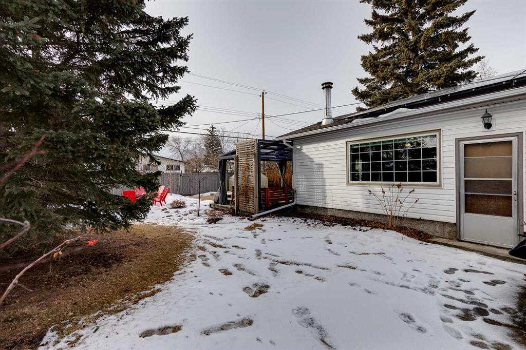 Set on a generous 56 ft x 120 ft lot in the heart of Bowness, this updated and character-filled bungalow provides a great opportunity to live or rent. With over 1,200 square feet, three bedrooms, and one bathroom, the home is well suited for those looking to settle into an established community while also recognizing the value of future redevelopment in one of Calgary’s most sought-after inner-city neighbourhoods. The main floor welcomes you with a spacious entryway and an abundance of natural light pouring through well-placed windows. Vinyl plank and hardwood flooring flow throughout the space, creating a cohesive feel that complements the home’s thoughtful updates. The open-concept kitchen, living, and dining areas are ideal for everyday living and entertaining. The renovated kitchen features crisp white cabinetry, quartz countertops, stainless steel appliances, and ample workspace and storage. Adjacent to the kitchen, the living room offers a warm and inviting atmosphere, anchored by a cozy wood burning fireplace. A four-piece bathroom serves the home, while a well-proportioned primary bedroom opens directly onto a front deck, an ideal spot for morning coffee or quiet evenings. Two additional bedrooms complete the layout, offering flexibility for family, guests, or a home office. The basement adds functional space with a dedicated laundry room, a recreation area suitable for hobbies or workouts, and plenty of storage to keep everything organized. Outdoors, the property truly shines. The backyard is expansive, featuring a deck with a covered pergola, a wide grass area, garden boxes, and a greenhouse for those with a green thumb. Two storage sheds provide practical space for tools and seasonal items. Parking is plentiful, with a front driveway that accommodates up to three vehicles. A rear alley runs behind the property.. The size and configuration of the lot further underscore the redevelopment opportunity, making this an attractive option for builders, investors, or future planning. Several major components of the home have been addressed over the years, including new siding and a hot water tank in 2017, updated windows, and a furnace installed in 2004. The home is equipped with a 100-amp electrical service. Bowness is known for its strong sense of community and exceptional access to outdoor amenities. Just steps from the Bow River, the area is surrounded by schools, parks, and playgrounds, with Bowness Park and Baker Park only minutes away. Residents enjoy nearby walking and biking trails, a wading pool, skating rink, and open green spaces. Daily conveniences are close at hand with local shops, restaurants, and services throughout the neighbourhood, while Market Mall, Alberta Children’s Hospital, Foothills Hospital, and the University of Calgary are all within easy reach. Quick access to Stoney Trail makes commuting simple and provides a direct route to the mountains, with Winsport and downtown Calgary approximately 15 minutes away.