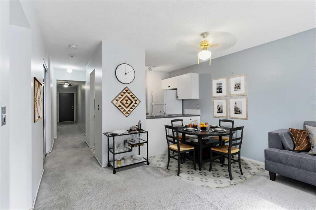 This prime Bridgeland location is blocks from the Bow River pathways, directly by Edmonton Trail, for easy access to Memorial, Deerfoot, the Downtown Core and East Village, AND with both assigned underground and loads of street parking available, enjoys all the shopping, dining and activities anyone could want or need! With Walk and Bike scores between 96 and 99, Transit nearby, and being the TOP floor of a Low-Rise 47 Unit apartment, life at Waterford is beautiful. This 723.32 square foot open concept apartment includes virtually staged photos for the listing, iGuide 3D tour, detailed floor plans, and offers its new owner thick plushy carpet in great shape, and easy-to-care for lino that can be updated with vinyl easily if desired. The plan is flexibly open, bright, includes TWO Bedrooms (the Primary is 12.25' wide, easily holds a king!) with large windows, and is listed for an incredible value price - the affordability cannot be beaten, and this home will not last long! 408 647 1 Avenue NE faces East, with a 12.75' x 6' Balcony for sunrises and morning coffees, plus comfortable temperatures inside while remaining naturally light. The large Storage and Laundry Room can double as a combination Pantry to the contemporary-white Kitchen, complete with a nice eating bar overlooking the Dining and Living Room combination. There is a washing machine included in the appliances, and carpets have been professionally cleaned with enviro-safe products prior to listing. Documents are available in supplements for agents, or upon request for previewing. The very secure building has fob access for BOTH security entry doors, a large welcoming Entry and lots of seating, additional fob security required to access the Parkade level, interior mail and package delivery, 1 hour parking for visitors, and street parking behind the building - so many conveniences! Management is responsive, and the building receives regular attention and maintenance. Looking forward to a quick purchase before the holiday enjoyments!