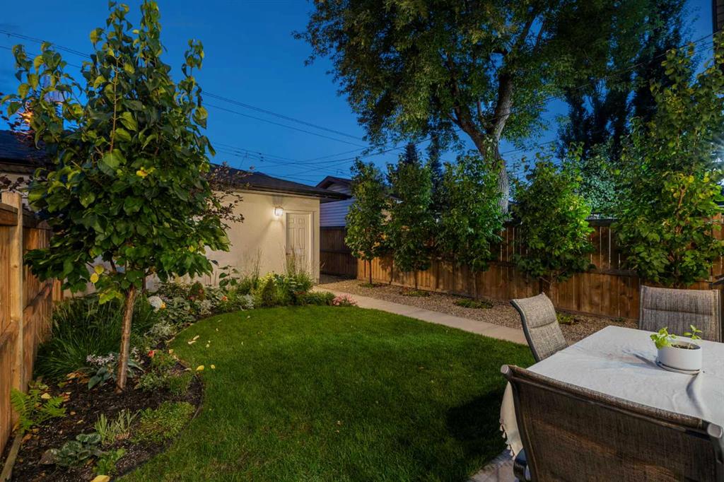 | Back Lane, Back Yard, Landscaped, Low Maintenance Landscape, Rectangular Lot, Underground Sprinklers |