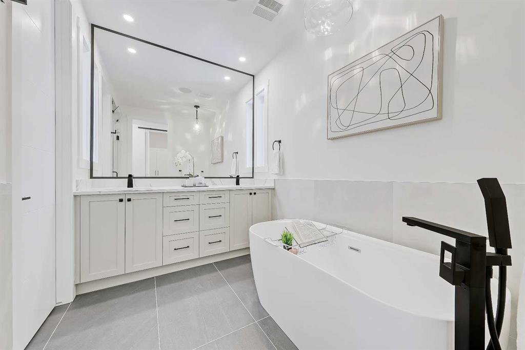**OPEN HOUSE THIS WEEKEND: SAT, FEB 21ST AT 3-5 PM & SUN, FEB 22ND AT 2-5 PM** This fully-developed and move-in-ready detached infill is a refined blend of architectural presence, thoughtful functionality and timeless design. Featuring over 2,655 sq. ft. of finished, bright living space (more than 1,900 sq. ft. above grade), this home includes 4 bedrooms, 3.5 bathrooms, and a double detached garage. This home was built by a custom inner-city builder, renowned for their meticulous attention to detail. Designed with the focus on beauty and natural lighting, this home provides instant luxury that exceeds expectations. The open-concept main floor is defined by 10-foot flat painted ceilings and wide-plank hardwood flooring throughout. A bright entryway with a generous front hall closet lead into the sun-filled dining area, where oversized windows create an inviting atmosphere. The living room is anchored by a linear gas fireplace with a full-height tile surround, offering warmth and understated elegance. A discreet powder room with quartz countertops and custom cabinetry, along with a rear mudroom featuring built-in storage and backyard access completes the space. At the heart of the home, the chef-inspired central kitchen makes a striking statement with an oversized 13-foot quartz waterfall island, ceiling-height shaker cabinetry, full-height tile backsplash, and a premium Bosch appliance package, including a gas cooktop, wall oven, French door refrigerator, chimney-style hood fan, built-in microwave, and integrated dishwasher—delivering both performance and timeless appeal. Upstairs, 9-foot ceilings and engineered hardwood flooring continue throughout. The primary retreat offers a vaulted ceiling, oversized windows, built-in speakers, and flexible space for a reading nook or home office. The spa-like 5-piece ensuite features heated tile floors, a freestanding soaker tub, dual vanities with quartz counters, and a fully tiled walk-in shower with rainfall head, body jets, and steam rough-in. Two additional bedrooms with walk-in closets, a beautifully finished main bath, and a dedicated laundry area complete the upper level. The bright, fully developed basement features 9-foot ceilings, plush carpeting, a spacious rec room with a wet bar, a large fourth bedroom with a walk-in closet, and a 4-piece bathroom. Thoughtfully prepared for a future legal basement suite, it includes a framed second exterior door, in-floor heat rough-in, future kitchen wiring, laundry rough-ins, and a 200-amp electrical panel. The exterior showcases Hardie board and brick siding, exposed aggregate walkways, full landscaping, and a large composite deck with a BBQ gas line. The home is backed by a Builder Warranty and Progressive 10-Year New Home Warranty. Ideally located in Capitol Hill, just minutes to downtown, SAIT, U of C, North Hill Centre, parks, schools, transit, and major routes—offering effortless inner-city living with enduring value. Schedule your private showing today!