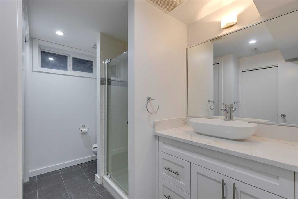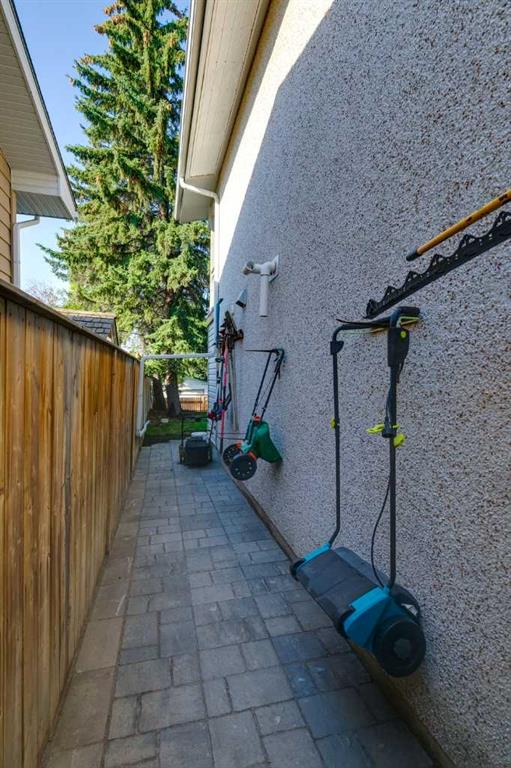 convenience of laundry on the main floor adds to the home's functionality. Upstairs, there are three good-sized bedrooms, including a primary suite with an UPGRADED 3-PIECE BATHROOM, alongside another upgraded bathroom. The basement offers a large recreation room, an additional bedroom, and yet another 3-PIECE UPGRADED BATHROOM. The beautifully landscaped backyard features a large deck, paved multi-level patios, and a NEWLY BUILT DOUBLE GARAGE with a spacious storage room, perfect for a workshop or extra storage. Additional highlights include a HIGH-EFFICIENCY FURNACE, a TANKLESS HOT WATER TANK, NEW WINDOWS, an upgraded ELECTRICAL PANEL, NEW AC, a newly installed IRRIGATION SYSTEM, and a NEW SKYLIGHT. The home also boasts a NEWER ROOF, vinyl siding, and stone veneer for an attractive exterior. With easy access to public transit, shops, and excellent schools, this home not only offers modern comforts and stylish upgrades but also the perfect setting for family living. Don't miss this opportunity to make it yours!