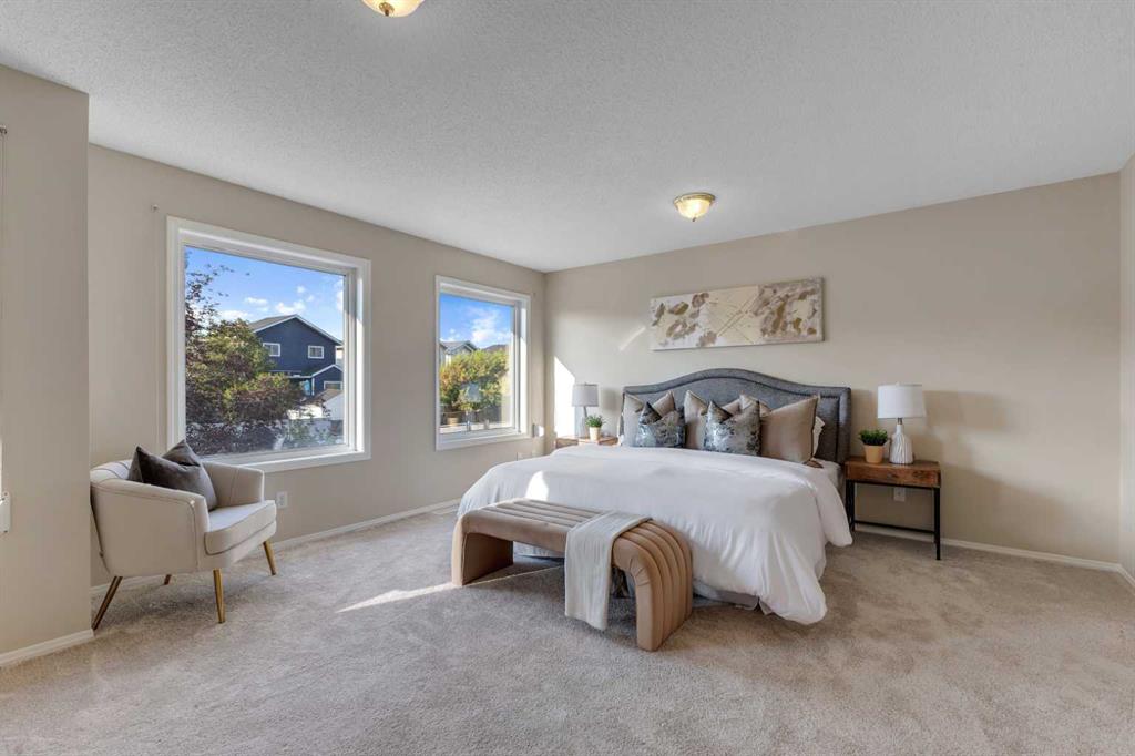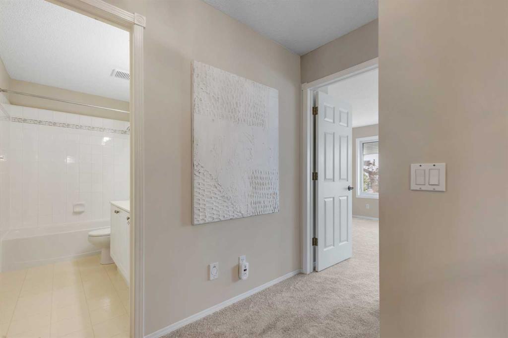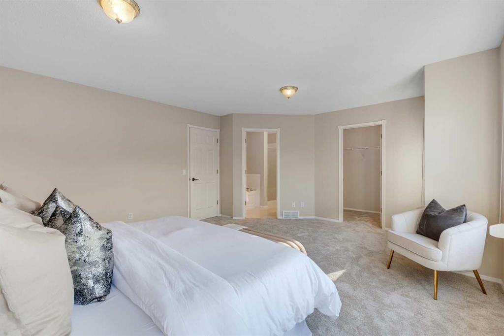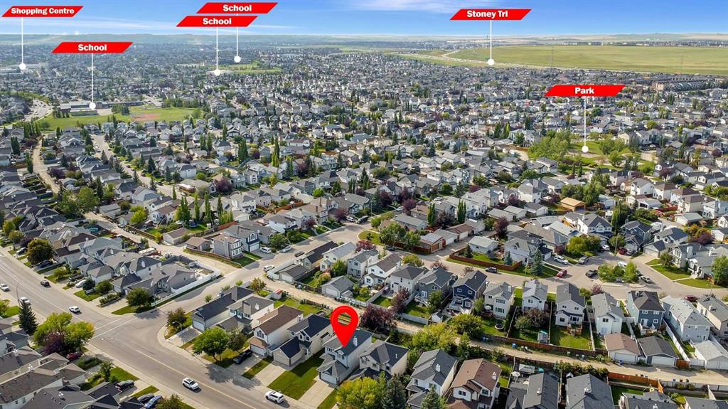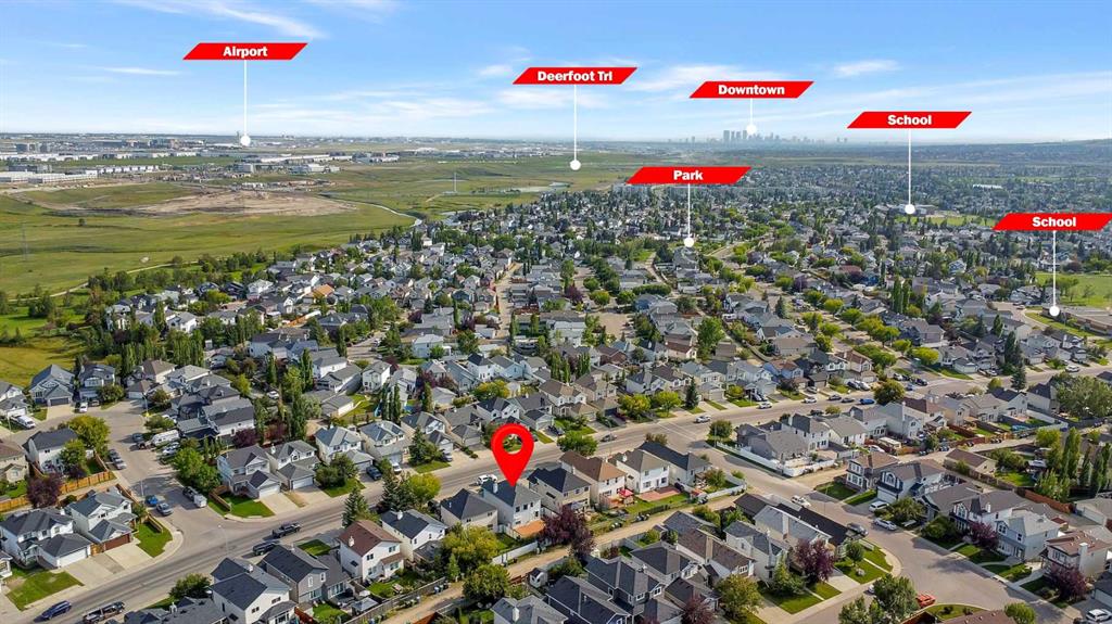 Welcome to your new home! Step into this beautifully maintained 2-storey gem in the heart of desirable Coventry Hills! Offering over 2,300 sq. ft. plus a fully finished basement, this 3-bedroom, 3.5-bath home is move-in ready! From the moment you walk in, you’ll be captivated by the bright, open-concept layout with an abundance of natural light streaming through the LARGE WINDOWS THROUGHOUT the home. Enjoy peace of mind for years to come with a new roof (summer 2025), newer hot water tank (Sept. 2021), newer furnace (Sept. 2021), fresh new paint, new carpets, and stunning hardwood floors. The bright kitchen features stainless steel appliances, ample counter space, and a spacious dining nook surrounded by windows, with direct access to your oversized deck and fully landscaped backyard — perfect for family gatherings, entertaining and summer BBQs. Upstairs you’ll find three generous bedrooms including a massive primary suite with extra windows, a walk-in closet, and a spa-inspired ensuite where you can relax and recharge. The lower level is an entertainer’s dream with a feature rock wall, built-in TV/speaker niches, games/media area/family room, full bathroom, and the ultimate man cave vibe. Additional highlights include CENTRAL A/C, exterior roll shutters for comfort and efficiency, and a front Double-attached garage. Perfectly situated only steps from parks, top-rated schools, playgrounds, scenic pathways, shopping, VIVO Centre, library, transit, and with quick access to Stoney Trail, this home offers both convenience and lifestyle and has many beautiful features! Don’t miss your chance to make it yours! This home truly checks every box for location, lifestyle, and value!!