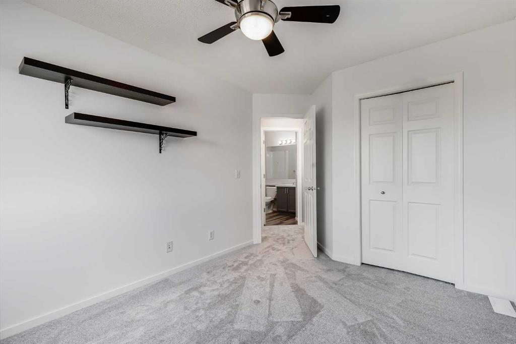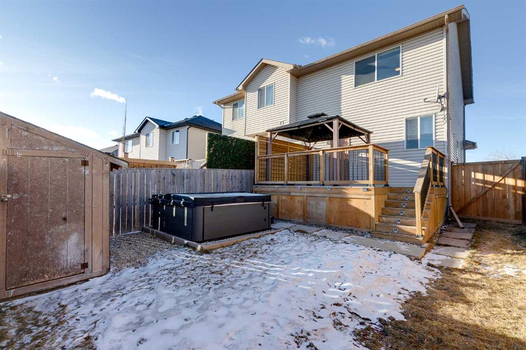 Well-maintained home with no condo fees, ideal for a first-time buyer or growing family. Pride of ownership shown throughout this well cared for residence . Features new carpets throughout and a recently developed basement with a full bathroom, Murphy bed, and a couch that converts into a bed, perfect for guests or flexible living space. Upstairs offers three bedrooms and a bright, functional layout. The main floor includes a comfortable living room, along with a nicely sized kitchen and dining area. The kitchen features epoxy counters and grey-blue lower cabinets with white uppers for a clean, modern look . Enjoy the private backyard with a deck, gazebo, and hot tub. After a relaxing time in the backyard coming back to air conditioning completes your perfect summer days. Rear parking pad offers space to build a garage. Fantastic location with a park across the street, elementary, junior and high school nearby. Easy access to grocery stores, CrossIron Mills mall as well as Stoney trail and Deerfoot trail. Book your showing today!
