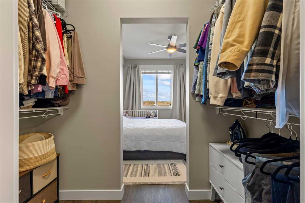 WELCOME TO THIS BRIGHT, BEAUTIFUL, TOP-FLOOR, CORNER 2-bedroom, 2-bathroom condo unit in Cranston offerING an OPEN-CONCEPT DESIGN with LARGE WINDOWS that flood the space with NATURAL LIGHT. The kitchen is a chef's delight with STAINLESS STEEL APPLIANCES, QUARTZ COUNTERTOPS, modern WHITE SOFT-CLOSE CABINETS. This unit features AIR CONDITIONING, DINING ROOM, and DURABLE LVP FLOORING throughout the living areas. The LARGE PRIMARY BEDROOM includes a WALK-THROUGH CLOSET and 5-PIECE ENSUITE complete with dual sinks, separate shower and bathtub, while a second bedroom and full 4 PIECE bathroom provide comfortable, flexible space for guests or family. Relax and enjoy the clear view from the top floor balcony. This unit also includes TWO TITLED PARKING STALLS —> ONE UNDERGROUND and ONE SURFACE plus an assigned STORAGE UNIT for added convenience. Cranston is a well-established, family-oriented community with shopping, schools, parks, playgrounds, and the Century Hall community centre, as well as walking and bike paths. Tucked at the top of the ridge, you’ll enjoy a short distance to the river valley, easy access to Deerfoot Trail, close to South Health Campus, and all Seton amenities nearby. DON'T MISS THE OPPORTUNITY TO OWN THIS FANTASTIC CONDO OR MAKE IT YOUR NEXT INVESTMENT!