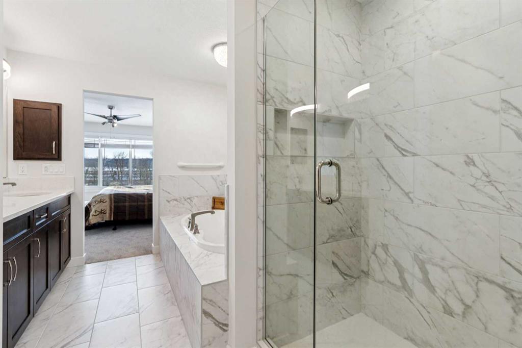 Just imagine living next to the Bow River with amazing views from all 3 floors of your new WALKOUT luxury home in the relaxing Riverstone section of Cranston! This is more than just a place to call home; welcome to a whole new lifestyle! This custom built, original owner Brookfield home was completed in 2023 & has all the luxury upgrades you would ever expect of a home in this unique location! Sitting on a large, fully landscaped, no maintenance lot in the river valley, you can enjoy the peace & tranquility from your covered balcony or covered ground floor patio, while you enjoy a quiet night by the firepit, or practicing up on the PUTTING GREENS in the sunny SOUTH FACING back yard! This 4 bedroom, 3.5 bath, luxury home features over 3300 square feet of developed living space & striking curb appeal with its stone accents, upgraded Hardie Board siding & Celebright (Gemstone style) lighting. The premium Luxury vinyl plank throughout the main floor contrasts well with the rich espresso colored kitchen cabinetry. This gourmet kitchen features an extended island, premium Stainless-Steel appliances, high ceilings, upgraded quartz counters & a walk-through butlers pantry. The main floor also includes a private office / flex space, a half bath, an amazing gas fireplace feature wall, access to the full-width StuXture Louvered Pergola patio system (completely changeable by remote control for rain or sun), soaring ceilings & windows which give amazing River Views from both floors of this home! The designer Artika lighting adds to that luxury feel & elegance you should expect. Upstairs are 3 large bedrooms, including the primary suite featuring a 5-piece spa-inspired ensuite, walk in closet & more amazing views of the river valley! The loft-style flex room also has unparallelled valley views & a full 4-piece bath. An optional Top Floor laundry room / storage closet completes this level. The walkout basement was developed with the same luxurious feel as the rest of the home, with 9-foot ceilings, a cozy electric fireplace, family room, secondary optional laundry room, bedroom, a full 4-piece bath, Wet Bar for entertaining, secondary dining area & access to a covered patio. Picture stepping outside to enjoy a fully finished outdoor living space with a beautiful covered balcony, on a large yard, backing right onto nature! Other notable upgrades include a water softener, full drainage & weeping tile to take water away from the home, gas B-B-Que hook ups on 2 levels, ornamental black fence, motorized blinds, Central Air & enough turf and decorative hexagon paving stones to complete this amazing no-maintenance back yard. There is also a fire pit, river access & your own putting greens! Riverstone in Cranston is one of Calgary’s most coveted communities. Tucked away in nature yet just minutes from Seton’s amenities of retail & restaurants, top-rated schools, direct access to the pathways of Fish Creek Park & the South Health Campus. More than just a home, it's a way of life!