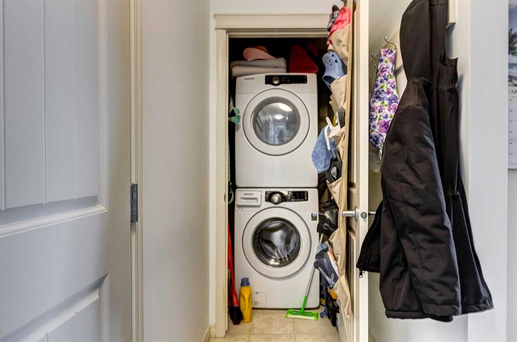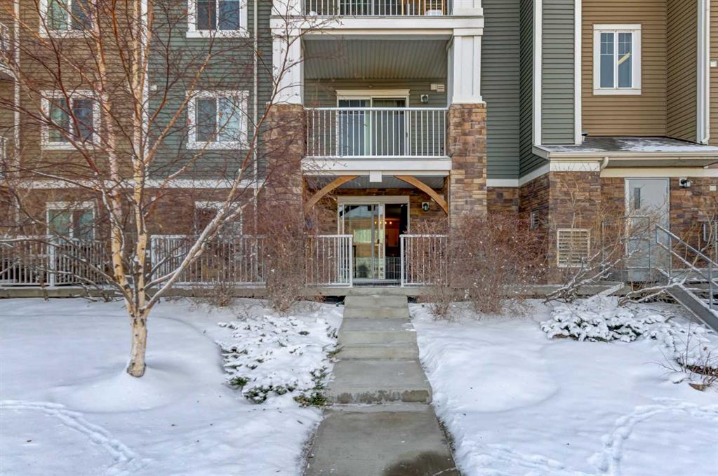 Main floor convenience and thoughtful design come together in this well cared for 2 bedroom home, ideally positioned just steps from the lobby entrance and titled surface parking, making daily comings and goings simple and accessible for anyone seeking minimal stairs and ease of mobility. Pride of ownership is immediately apparent in a one-owner residence that has been kept neat as a pin and maintained with care. An open floor plan creates a comfortable flow for everyday living, anchored by a crisp white kitchen offering ample storage, modern fixtures and a peninsula island with breakfast bar seating designed for casual meals and easy conversation. Clear sightlines connect the kitchen to the adjacent living area, allowing the space to function effortlessly for relaxing, hosting or keeping connected throughout the home. Sliding patio doors extend the living space outdoors to an exceptionally large 25’ covered ground-level patio complete with a gas line, providing a sheltered setting for summer barbecues, morning coffee or quiet outdoor relaxation. Two well-proportioned bedrooms offer flexibility for guests, home office use or shared living, while a full 4-piece bathroom and in-suite laundry add everyday practicality. Air conditioning ensures year-round comfort. Building amenities enhance daily life with a welcoming lobby featuring a cozy seating area, fireplace and library, creating a comfortable space to relax or connect with neighbours. Titled parking and a separate storage locker support an organized, low-maintenance lifestyle. Walkable access to shopping, coffee, medical services, dining and everyday conveniences places essentials within easy reach, while nearby pathways invite regular walks and connection to the surrounding community. Close proximity to Fish Creek Park, community recreation amenities and major roadways including Deerfoot and Stoney Trail ensures outdoor enjoyment and efficient commuting, making this location equally well suited to downsizers, professionals or anyone valuing comfort, accessibility and connection.