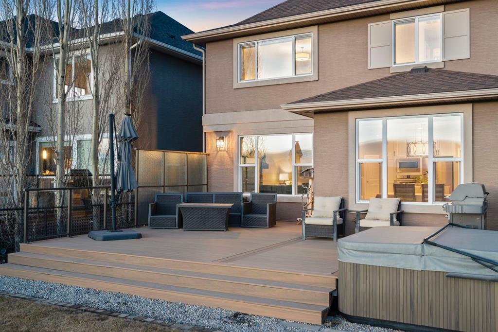 Unbelievable RIDGE HOME with spectacular WEST facing MOUNTAIN VIEWS & incredible sunsets! This beautifully UPDATED 2-storey house in the sought-after community of Cranston offers DIRECT access to ridge pathways = perfect for walking, biking & enjoying the outdoors! This special home features a rare 4 BEDROOMS UP layout, IDEAL for larger families! Bonus room on top level could ALSO become a fifth bedroom IF NEEDED! Covered entry (perfect on snowy days!) Enjoy LARGE foyer space, GLEAMING HARDWOOD, 2-piece bath, main floor office, mud room, walk-thru pantry from DOUBLE garage (drywalled/insulated + HIGH ceilings ideal for storage!) that you can easily park 2 vehicles in!! OPEN CONCEPT living means your family can live, eat, cook, entertain, study, work - ALL in one beautiful space w/central A/C for year-round comfort. BIG Island and LIGHT cabinets in Kitchen! Transition DIRECTLY outside (NO stairs!) & enjoy NEW composite deck w/privacy panels, updated outdoor lighting, underground sprinklers PLUS hot tub - perfect spot for relaxing while enjoying incredible MOUNTAIN VIEWS & SUNSETS. Head upstairs to experience a HUGE primary SUITE with custom wall, incredible natural LIGHT & those amazing VIEWS that greet you every morning! Beautiful ensuite & walk-in closet PLUS toilet room for privacy. BONUS room perfect for MOVIE nights, games, studying or playing music. Laundry room ideally located on top floor! THREE MORE bedrooms + additional 4-piece bath - made for multi-person use (great for kids sharing!) Numerous updates include: NEW kitchen appliances, hood fan, tile backsplash, faucet, garburator, redesigned pantry shelving (great to stay organized!), washer/dryer, carpet & underlay upstairs, fresh paint, updated ensuite flooring & tiled shower w/glass doors, toilets & digital thermostats. Developed basement offers MORE value! Space to relax, workout, entertain, craft + 1 more bedroom & ANOTHER full bath - perfect for guests or teens or additional office space! Steps from Fish Creek Provincial Park, one of Canada's largest urban parks. Enjoy a family picnic by the Bow River, walk the dog or spend a day cycling on 100+ kms of trails! Community is designed to feel secluded & far from busy big city life – yet it's only a short distance from important amenities. Seton is right next door, grab a meal, enjoy a pint of craft beer or check out a movie at the theatre! South Health Campus Hospital is a stone's throw away. Cranston's Century Hall, a 22,000-square-foot community centre, houses a gym & meeting/banquet rooms. Outside, expect year-round recreation at the splash park, outdoor hockey rink & 2.8-hectare private park. Add in access to Public & Catholic school options, parks, major roadways, transit + great neighbours...what are you waiting for!?! Don't miss this rare opportunity to own a move-in ready RIDGE home (with NO ROAD below!) Book your showing today. You can BUY this home and start enjoying this view blossom into spring!
