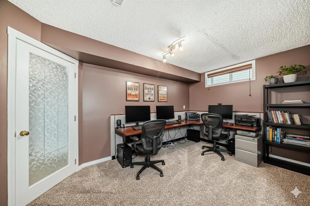 Beautifully upgraded and backing onto the 10th hole of Eaglequest Golf Course, this Douglasdale home pairs elegant design with an exceptional location. From the moment you arrive, the immaculate landscaping and undeniable curb appeal reflect the pride of ownership found throughout. Inside, a grand entry with soaring ceilings, fresh paint, and a statement chandelier sets the stage for a bright, airy interior. Floor-to-ceiling bay windows flood the living room with natural light, showcasing gleaming hardwood floors that extend into the open-concept dining area. The kitchen impresses with its striking palette, new stainless-steel appliances, new sink and garburator, and a full pantry. An eat-up island and sunny breakfast nook overlook serene golf course views — an ideal backdrop for your morning coffee. Step outside to an expansive deck with glass-panel railings designed to draw you into the peaceful surroundings. Back inside, the cozy family room offers the perfect place to unwind by the gas fireplace, while a main floor office, powder room, and laundry area with a brand-new washer and dryer add convenience and versatility. The oversized double-attached garage comes equipped with built-in storage and a new smart door opener. Upstairs, the primary retreat is truly stunning, featuring vaulted ceilings, arched windows, a spacious custom walk-in closet, and a spa-inspired ensuite with a jetted tub and separate shower. Two additional generous bedrooms and a large main bath complete the upper level. The finished basement is a standout, offering one of the brightest lower levels you’ll find. A second gas fireplace anchors the expansive rec room, perfect for movie nights, a home gym, or a games area. You’ll also find a second office with built-ins and bay windows, a half bath, and abundant storage in the utility room. Additional features include central air conditioning, a smart thermostat, and an irrigation system. Outside, the deck steps down to a stamped concrete patio, and the lush lawn bordered by mature foliage creates an inviting setting at any time of day. Situated in a highly walkable neighborhood close to schools, parks, and sports fields, this home is also near the Bow River Pathway. Fish Creek Park is just a block away, and South Trail Crossing’s shops and dining are only minutes from your door. Quick access to Deerfoot and Stoney Trails ensures effortless commuting and easy escapes for weekend adventures. This home truly has it all — style, comfort, and an unbeatable setting. Book your showing today!
