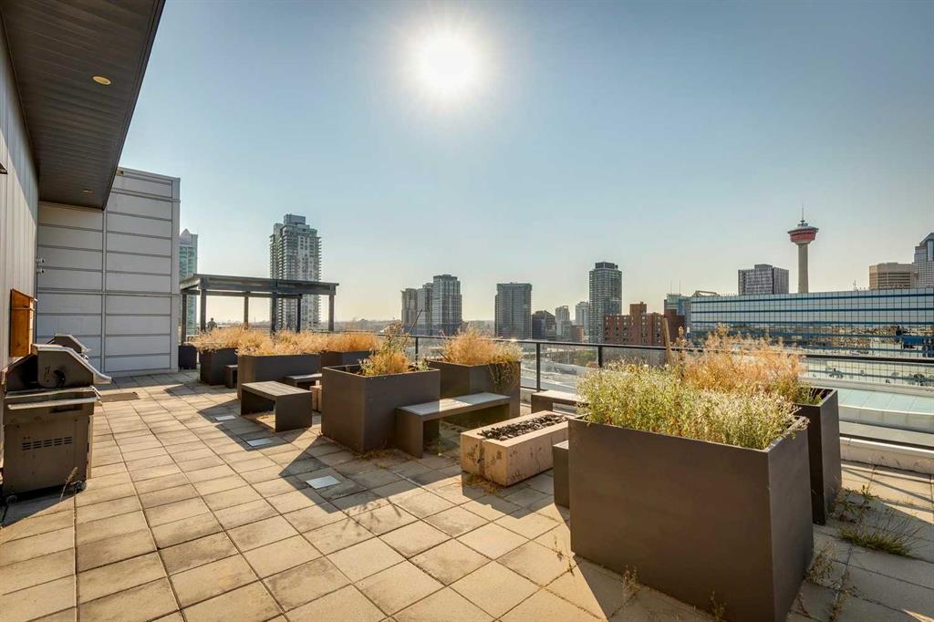 Ideally located within the complex, this unit shares only one wall and enjoys unobstructed east-facing views. The functional floor-plan is thoughtfully designed, feeling much larger than the square footage suggests. The galley-style kitchen provides ample prep space & storage, complete with an upgraded appliance package featuring a stainless steel fridge, electric cooktop, & built-in wall oven—perfect for the home chef. A euro-style washer/dryer combo is discreetly tucked behind sleek white cabinetry. The open-concept living area flows seamlessly onto the east-facing balcony and offers plenty of room for both a media setup and office space. The spacious bedroom boasts floor-to-ceiling windows with north and west exposures, while the four-piece bathroom is finished with granite countertops and a functional layout. N3 is known for its outstanding amenities: the entire top floor is dedicated to work and wellness & includes a co-working hub with cozy cubicles ideal for working from home, a two story fitness area with a cardio area with treadmills, bikes, and indoor rowers, & a lofted strength-training space outfitted with free weights, multiple benches, & machines. Access the massive wraparound rooftop terrace with multiple seating areas, fire pits, and a built-in BBQ—perfect for soaking in views of the new Central Library, Stampede Grounds, & the upcoming new Calgary Flames arena. Cyclists will appreciate the state-of-the-art bike storage designed by Bow Cycle, including raised sliding racks and a dedicated bike maintenance area. A large storage locker is also included. With a Walk Score of 94 the location is convenient to literally all amenities with the LRT station, Central Library, and all the exciting shops and amenities of the East Village just steps away. As the neighbourhood continues to grow, East Village has become one of the most desirable addresses in Calgary’s downtown core. Call today for more information or to schedule your private showing!