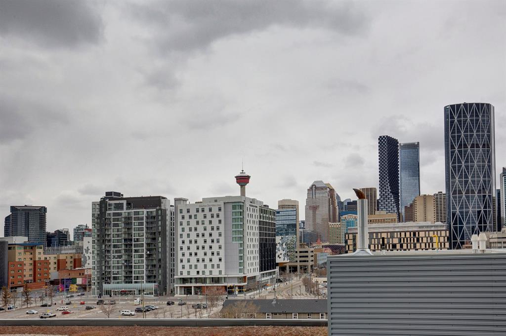 Great Investment Opportunity! Welcome to this luxurious condo with breathtaking DOWNTOWN VIEWS located in the vibrant East Village! Enjoy stunning city views from the living room, bedroom, and private balcony, making this unit truly one of a kind. This ultra-modern home features an open-concept floor plan filled with natural light, high-end built-in appliances, elegant cabinetry, and sleek quartz countertops. The spacious bedroom, stylish 4-piece bathroom, and a dedicated office area create the perfect blend of comfort and functionality. Additional features include UNDERGROUND PARKING and STORAGE. The building offers exceptional amenities such as a FITNESS CENTER,PARTY ROOM, hot tub on the 6th floor, guest suite, observation lounge and public deck on the 25th floor, plus 24-hour concierge and SECIURITY. Located just minutes from shopping, C-Train station, Riverwalk, and the new Central Library, this property combines urban lifestyle with convenience. Whether you’re looking for an investment or a stylish downtown home, this one is a must-see!