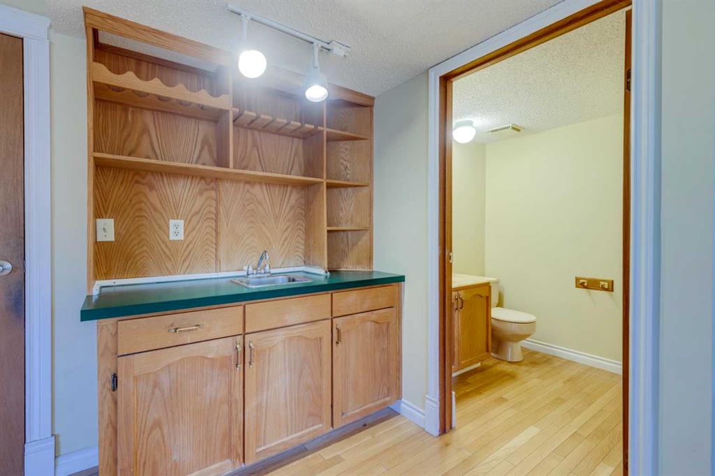 Continue down to the walkout basement, where a warm and inviting family room awaits. A classic wood-burning brick fireplace anchors the space, complemented by a wet bar and a convenient 2-piece bathroom. Just a few more steps lead to the lower level, where you’ll find a practical laundry room featuring its own dog/utility shower—perfect for pets, work gear, or muddy boots—as well as direct access to the garage and ample storage.
