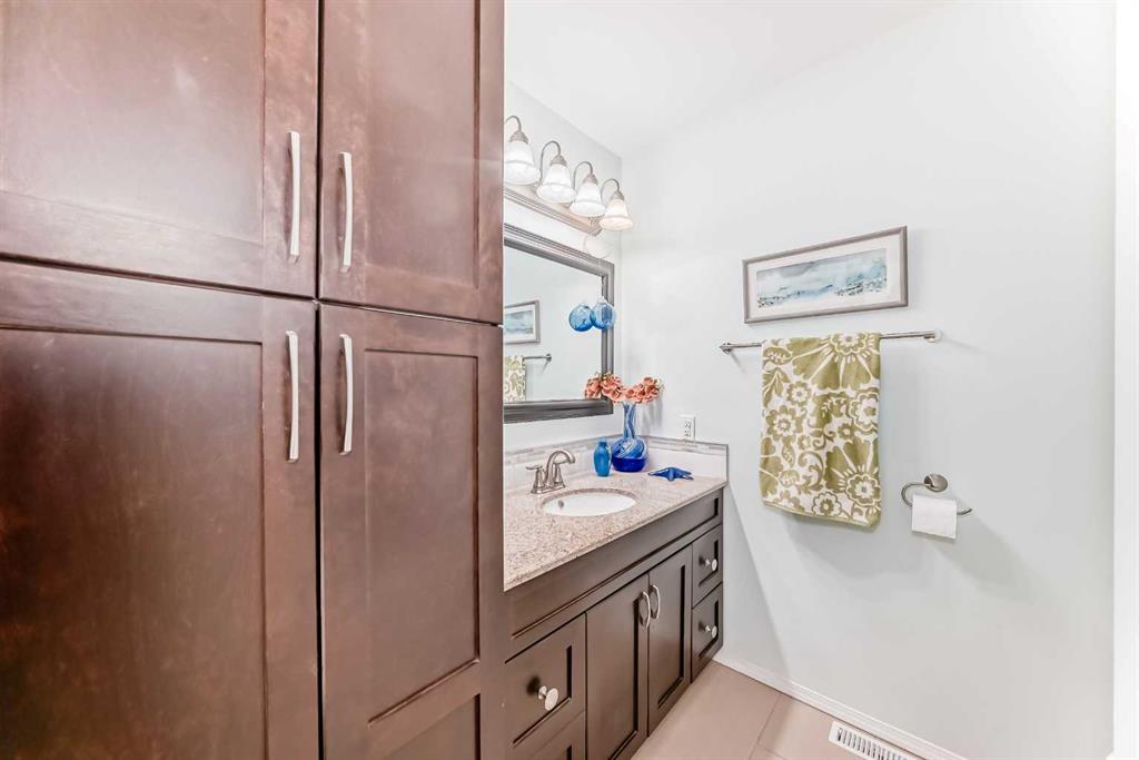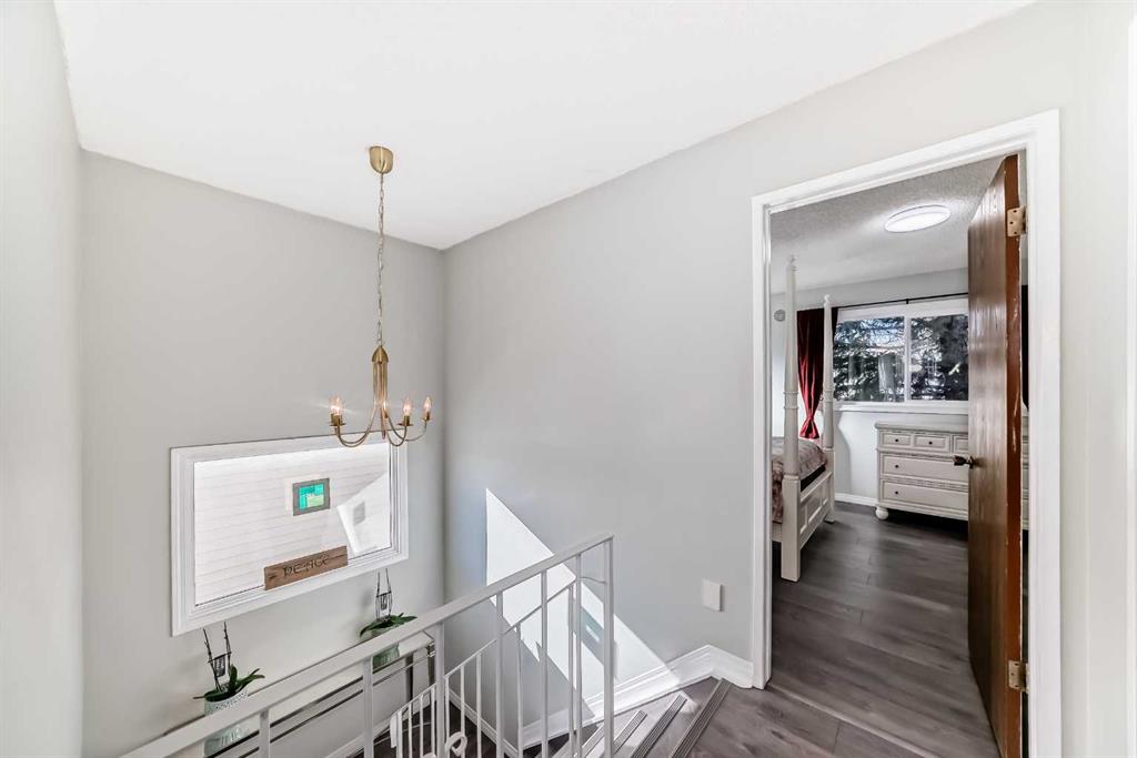 Beautiful walkout 2 storey half duplex with so many upgrades including a very bright kitchen with an array windows and an impressive display of modern floor to ceiling shaker style cabinets, Pantry with pull outs, more than 6 banks of drawers spread out between island and wall cabinets, uner mount lighting, large working island, recessed lighting, engineered Oak wood flooring throughout main floor, spacious dining area adjacent to kitchen with patio doors onto a very large new trex deck with metal railings. Upper level recently updated with laminate flooring, 4 pce bathroom fully renovated with granite tops, new cabinetr and frosted glass doors., large primary bedroom plus 2 secondary bedrooms on upper level. Long spacious family room with picture window and wood burning fireplace with log lighter. Walkout basement with 90% completed family room (needs flooring), rough-in and framed 3 pce bath, large mechanical room with new Furnace, Hot water heater, also doubles as laundry room. Newer maple cabinetry. Updated vinyl windows, Shingles, interlock sidewalk, and deck. Walkout lot could provide a great space to build a garage with roof top patio at same leve of walkout basement level.