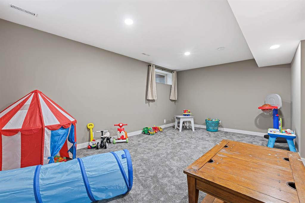 The fully finished basement offers additional living space, complete with brand-new carpets (2024), upgraded lighting, fresh paint, a laundry room, ample storage and newer hot water tank.