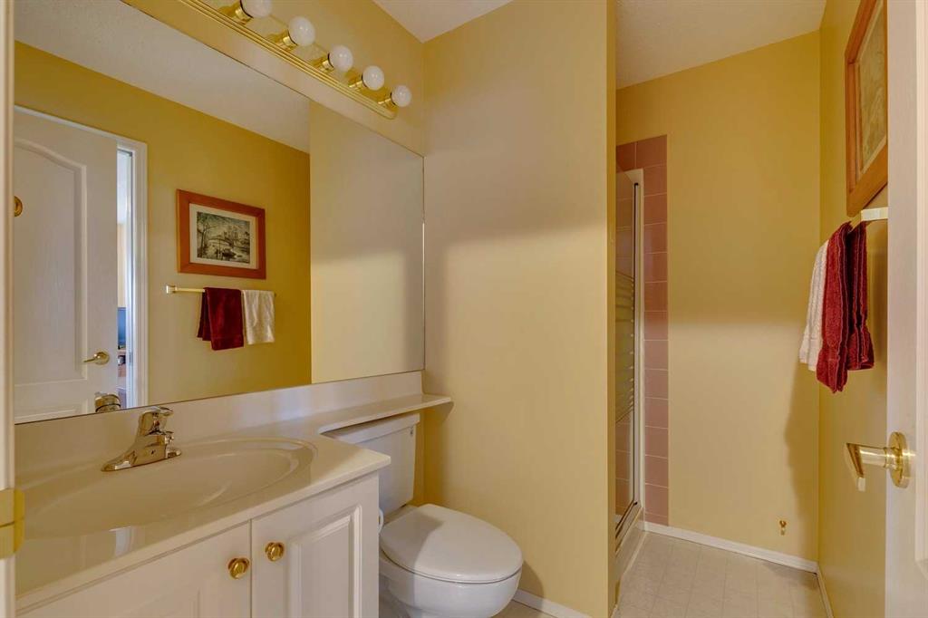 Open house Sunday October 19 2025 1-3 pm Excellent opportunity in this highly sought-after fee-simple detached bungalow villa complex in Evergreen Estates. $164/month includes snow removal and landscaping, allowing you to enjoy a carefree lifestyle in a detached bungalow. Nicely upgraded and maintained home features soaring vaulted ceilings, rich 3/4" white oak hardwood floors, a newer kitchen with full-height cabinets, quartz counter tops, stainless steel appliances and tile backsplash. Large primary bedroom with a lavish renovated en-suite and main floor bath with an oversized 10mil glass shower, granite vanities, tile floors, under-mount sinks, and upgraded faucets. Full basement development offers a third bedroom, a huge family room with, a cozy wet bar, a full bath, a craft room/second office, and a workshop. New furnace and hot water tank, new water softener, rebuilt composite rear deck, triple pane windows with metal clad exterior frames, new gutters, newer garage door and opener, some upgraded blinds, new front and rear doors and more. This property has been professionally maintained, and mechanical components have been serviced regularly since the owners purchased the home. Walk to Fish Creek Park in seconds from this home or enjoy the amazing network of community pathways. Great access to the ring road, shopping and schools. Evergreen Estates is a truly "Estate" home community with only single-family homes, large lots, very low density and mature trees throughout the community. The sellers have only occupied the home for seven months a year since they have owned it.