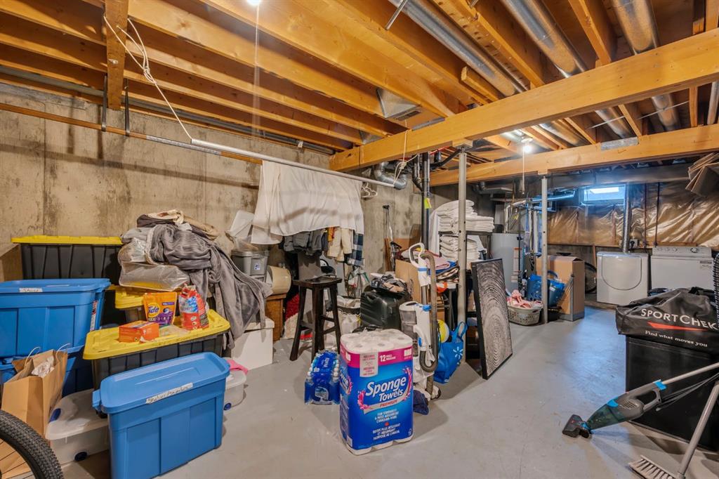 The unfinished basement offers endless potential for future development, with laundry, roughed-in plumbing, and ample storage, including space under the stairs—ideal for a home gym, office, or recreation room.