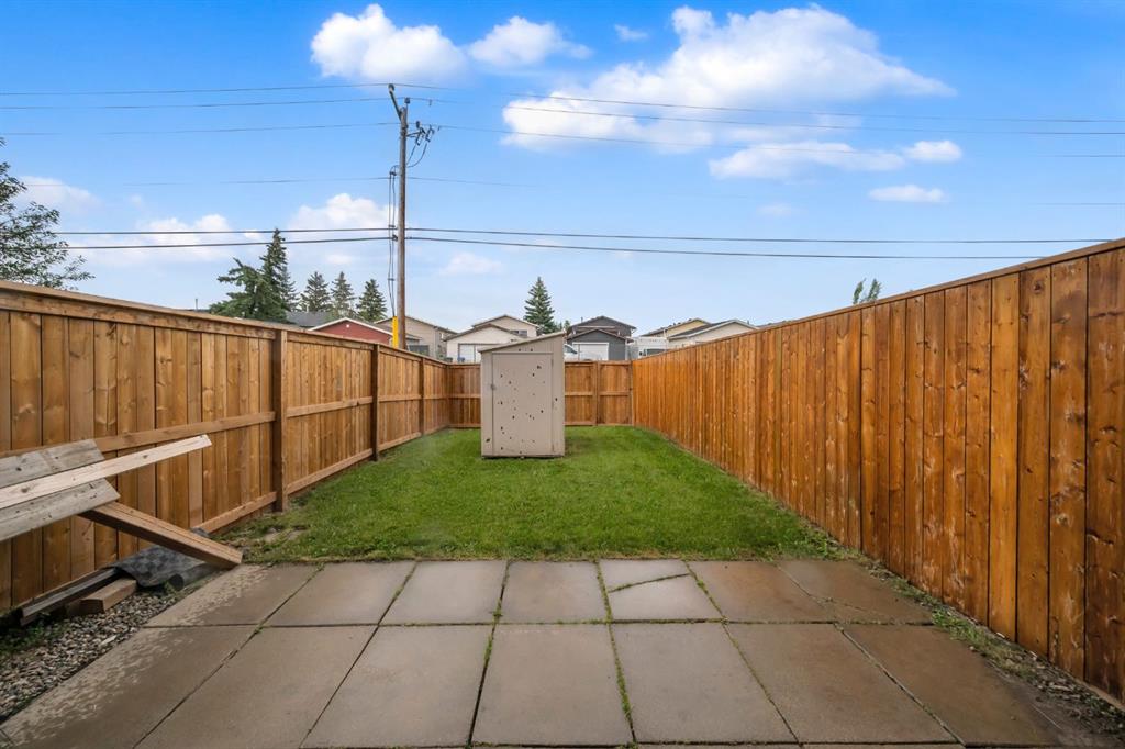 A standout feature is the modern full bathroom on the main floor, added in 2023, complete with a walk-in shower—ideal for guests. The main floor also boasts durable laminate flooring, a bright living room with a large bay window, and a cozy dining area that flows seamlessly into a well-appointed kitchen. The kitchen features stainless steel appliances, a dual-basin sink, sleek countertops, and ample cabinetry. Step through sliding glass doors into your private, fully fenced backyard with a patio, perfect for summer gatherings or quiet relaxation.