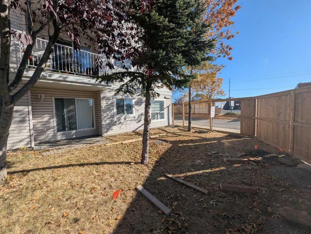 Wooden Fence is being installed, check photos | AMAZING OPPORTUNITY TO OWN THE CORNER UNIT IN THE MAIN FLOOR. OPEN CONCEPT LIVING ROOM AND DINING ROOM ADJACENT TO EACH OTHER, GREAT FOR ENTERTAINMENT. LIVING ROOM IS FLOODED WITH NATURAL LIGHT FROM A WIDE SLIDING GLASS DOOR AS ACCESS TO THE FRONT PATIO GREAT FOR SUMMER BARBECUING. KITCHEN HAS WHITE CABINETRY AND AN ISLAND THAT CAN ACCOMODATE TWO BAR STOOLS. PRIMARY BEDROOM IS GENEROUSLY SIZE WITH A BIG WINDOW AND WALK IN CLOSET, AND ACCESS TO THE FULL BATH. SECOND BEDROOM IS ALSO A GOOD SIZE BEDROOM WITH BIG WINDOW. THERE IS A LARGE STORAGE ROOM WITH AN EN-SUITE LAUNDRY FOR YOUR CONVENIENCE. Electricity is included in the condo fees—adding to the affordability and ease of living here. Situated just steps from shopping, schools, restaurants, and public transit, this location offers unbeatable everyday convenience. Perfect for first-time buyers, downsizers, small families, or investors, this move-in ready home also includes a dedicated outdoor parking stall. Don’t miss out—schedule your private showing today!