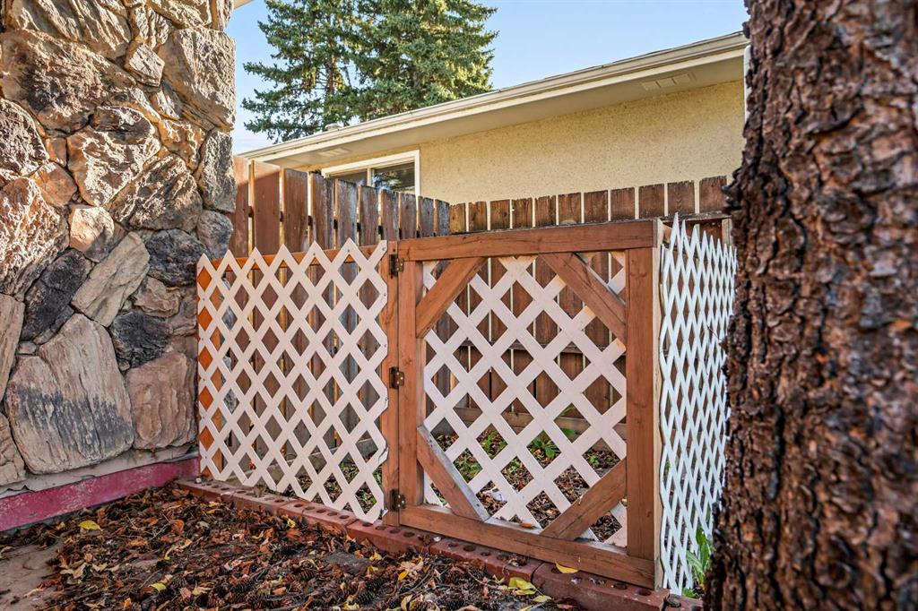 The private backyard is a peaceful retreat, framed by mature pine trees that bring timeless character and beauty. Stone siding carries through the exterior for a cohesive look that stands out in the neighborhood.