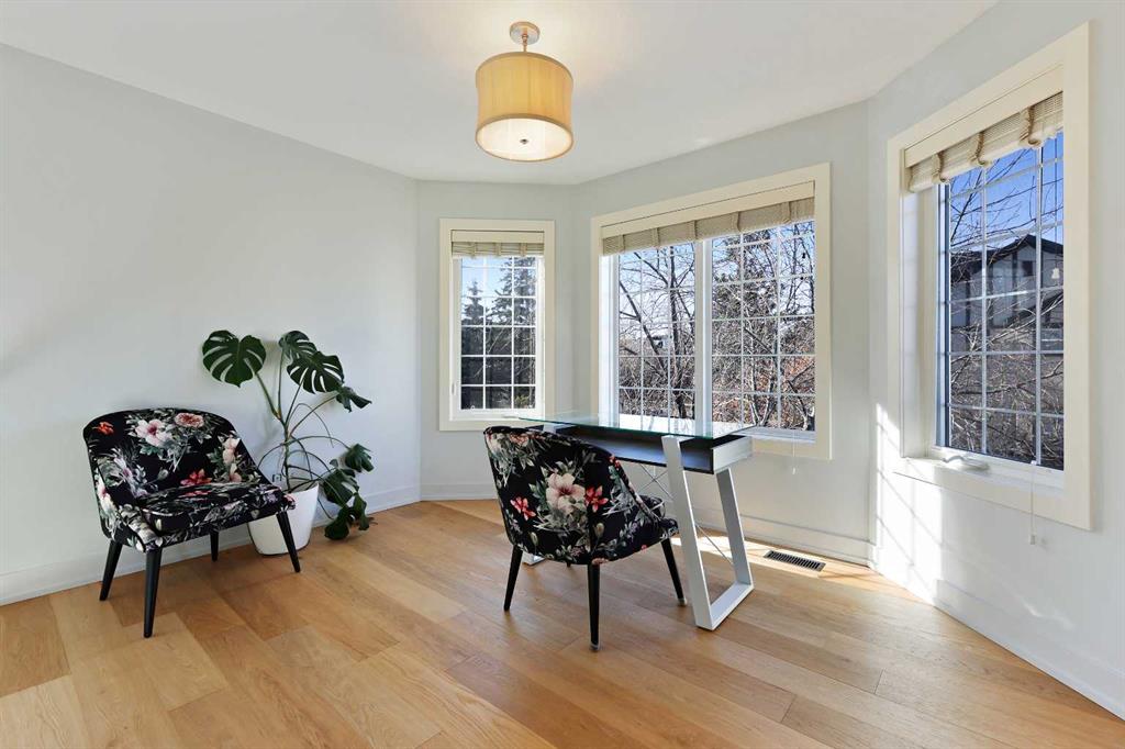 Outside, enjoy morning coffee on your front porch or host family and friends in your private backyard with an amazing built in BBQ! Complete with Hardie board exterior siding, this wonderful home also includes a convenient fully functioning irrigation system. The property features a double detached garage, with built in storage and backs onto a paved alleyway. This home’s location truly can’t be beat—just steps from top-rated schools (Masters Academy and Lycee international de Calgary), parks and playgrounds, and minutes to Marda Loop’s vibrant shops, cafés, and restaurants. A short drive brings you to downtown Calgary, making this the perfect home for those who want the best of both urban and community living.