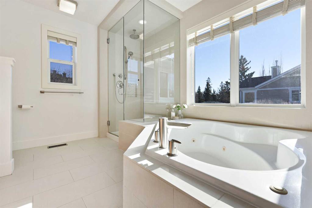 Upstairs, you’ll find three generously sized bedrooms—including a primary suite with a walk-in closet and ensuite equipped with in-floor heat, double vanities and a jet soaker tub. The west sunlight floods the upper level and is highlighted by a bonus loft area ideal for an office or reading/play area for the kids.
