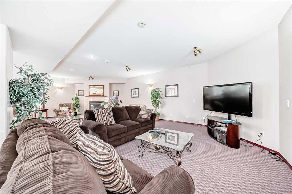 Welcome to sought-after Glenmeadow Gardens, a friendly 55+ community with wonderful amenities. This bright & well maintained 960 sq ft main floor unit offers a 2 bedrooms ( 2nd bedroom ideal for den/home office), 2 bathrooms & in-suite laundry. The open layout features fresh paint throughout, cozy corner fireplace, air conditioning & in-floor heat for year-round comfort. Enjoy your morning coffee on your private balcony with a gate leading to the green space & flower gardens allowing you to continue gardening. You’ll also appreciate the assigned heated underground parking stall (if needed), bike storage & large storage room with shelving. Glenmeadow Gardens is known for its welcoming atmosphere & outstanding amenities: a beautifully landscaped courtyard with gazebo, community garden, social room with kitchen, pool table & shuffleboard, fitness equipment, library/card/puzzle area, Telus fiber optics throughout, visitor parking & 2 rentable guest suites for visiting family or friends. This is more than a home-it’s a lifestyle of ease, comfort & community in a prime location.