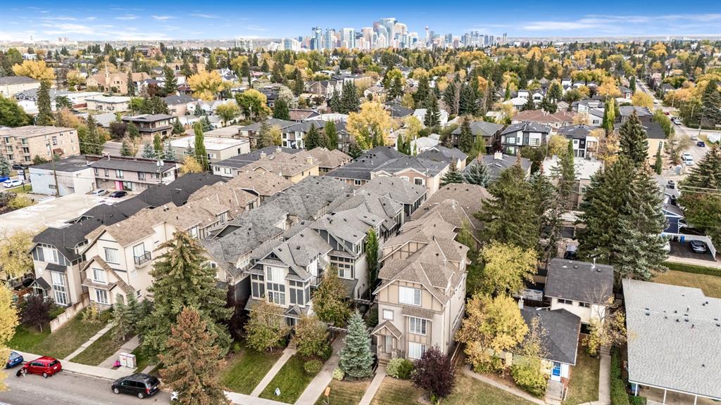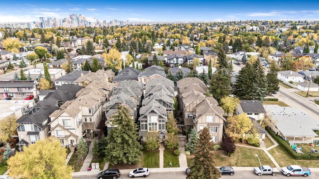OPEN HOUSE SATURDAY OCTOBER 11TH 2PM-4PM A rare opportunity to live in a luxurious end unit townhome on a quiet street offering over 2000 sq ft in the One of Calgary’s most desirable inner-city neighborhoods Killarney. This immaculate home has plenty of upgrades; 9’ knockdown ceilings, gleaming hardwood floors, upgraded plumbing fixtures, Hunter Douglas blinds, stone counters, custom closets, fresh paint, the comforts of air conditioning and a concrete wall separating you and the one neighbor. Head down the courtyard to unit 4 where you are greeted by a large front foyer and convenient direct access to the heated garage. This space was intentionally designed to be on its own separate level as a drop zone and to keep the mud and mess down and away. Upstairs is flooded with natural light. The massive chef inspired kitchen is a focal point with slow close cabinets that reach to the ceiling, built in wine rack, undercabinet lights, premium SS appliances (including a gas range) and chimney hood fan, an expansive 10-foot island with gorgeous quartz counters, timeless tile backsplash and a large corner pantry for additional storage. Perfect for entertaining the kitchen looks onto the spacious dining room and inviting living room showcasing a gas fireplace with stone detail. Off the living room is a large, covered patio and office perfect for those who work from home, or as a playroom. The powder room is tucked away on its on separate level for privacy and includes side by side laundry with cabinets to keep you organized. On the upper level are two well sized bedrooms one with downtown VIEWS, a 4pc main bath and the primary retreat. This generous sized primary is a true sanctuary with its own private patio a massive walk-in closet and a spa inspired ensuite Including dual sinks, a large soaker tub, and fully tiled shower with 10 mm glass. Beyond Home you will love the lifestyle. Only minutes away from downtown, close to parks, shops, restaurants, schools, the rec center, bow river path system, shaganappi golf course and ctrain! Providing endless opportunities for work and play. If you have been searching for a home that balances luxury with livability in an unbeatable location schedule your private tour today!