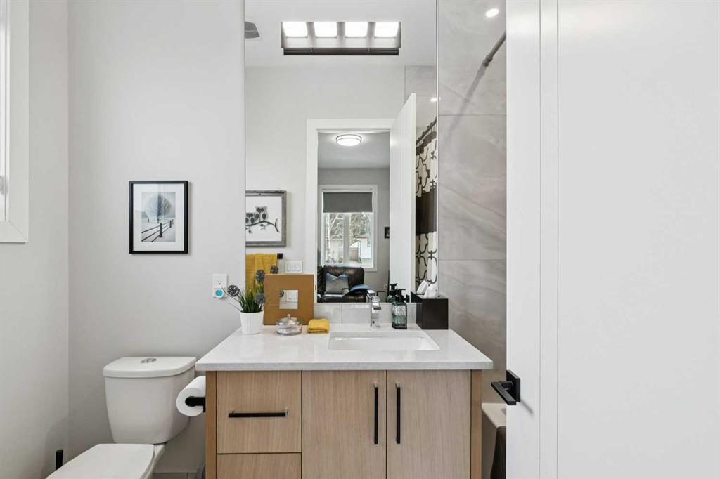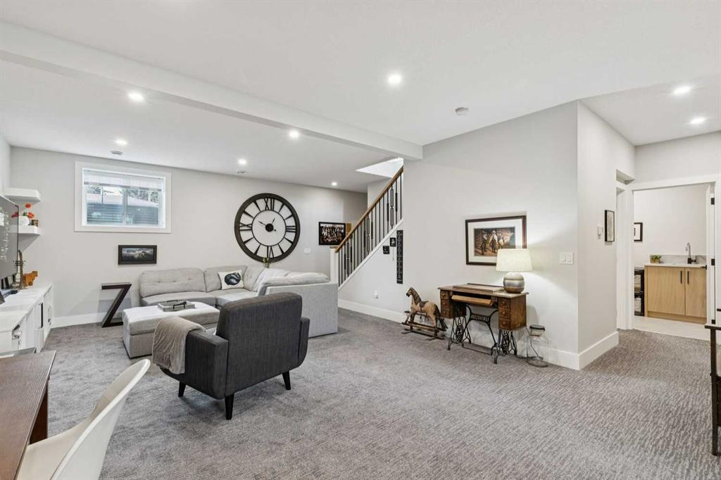 This modern masterpiece has been completely transformed from the foundation up, combining exceptional craftsmanship, custom finishes, and luxurious details throughout. Spanning over 2,900 sq. ft. of thoughtfully designed living space across two levels, with four elegantly appointed bedrooms, this custom bungalow epitomizes refined luxury in the highly sought-after family neighbourhood of Haysboro. Set on an oversized 50’ x 140’ lot on one of the community’s most serene, tree-lined streets, the property includes a triple garage with a fully serviced 839+ sq. ft. workshop/studio above, offering extraordinary potential for a guest house, home office, gym or private studio. The expansive grounds provide privacy, mature landscaping, and generous outdoor entertaining space, rare in inner-city living. Extensive structural enhancements include an extended and raised foundation, creating soaring ceiling heights and expanded square footage on both levels. The sun-filled main floor boasts 10-foot ceilings, walnut hardwood floors, and a sophisticated open-concept layout designed for both everyday living and elegant entertaining. The gourmet designer kitchen features built-in KitchenAid appliances, an oversized 48” refrigerator, full-height porcelain slab backsplash, premium lighting, and flows seamlessly into the living area, anchored by a 42” Napoleon gas fireplace. The main level includes two luxurious bedrooms, each with its own private ensuite, including a serene primary retreat with a spa-inspired 6-piece ensuite, premium fixtures, and a discreet hidden entry to the walk-in closet. A stylish powder room completes the main floor. The fully developed lower level continues the elevated design with 9-foot ceilings, a generous recreation and entertaining area with custom wet bar, and two additional large bedrooms connected by a Jack-and-Jill 5-piece bathroom, ideal for a growing family or private guest quarters. Outdoors, the private, professionally landscaped backyard offers a tranquil oasis, perfect for relaxing or entertaining. Ideally located in Haysboro, the home is steps from parks, playgrounds, walking paths, and green spaces, and minutes from top-rated schools, Chinook Centre, Rockyview Hospital, and major transit routes including LRT access. Quick connections to downtown and major roadways make commuting effortless, while the neighbourhood’s mature trees, strong community spirit, and family-friendly atmosphere enhance long-term desirability. A rare, one-of-a-kind offering, defined by meticulous attention to detail, high-end finishes, sophisticated architectural planning, and an exceptional location. Book your private viewing today!