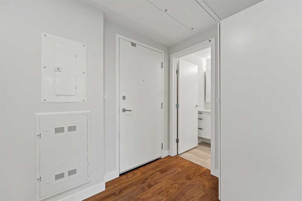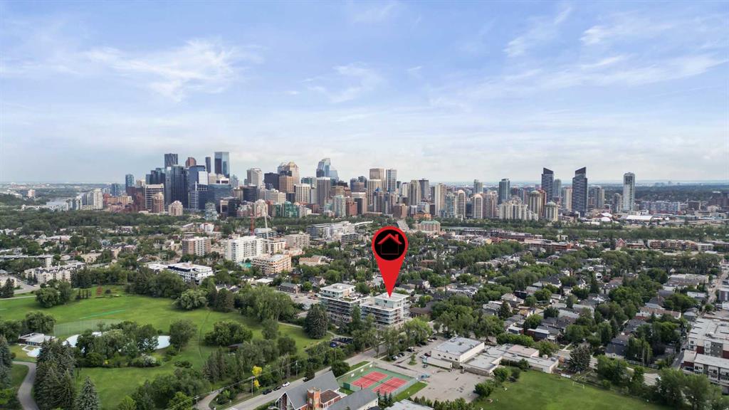 Welcome to Ezra on Riley Park, a truly unique address in the heart of Hillhurst, where stylish city living meets the serenity of nature. Nestled along the edge of the iconic Riley Park, this sophisticated 2-bedroom, 2-bath condo offers a rare opportunity to experience the best of inner-city Calgary—with breathtaking views, upscale design, and unmatched walkability. From the moment you step inside, you'll feel the difference. A spacious foyer welcomes you with beautiful textured engineered hardwood flooring, leading you into a thoughtfully designed open-concept living space filled with natural light streaming in through floor-to-ceiling windows. This home is perfectly framed by views of the lush greenspace just beyond, creating a seamless connection between indoor luxury and outdoor beauty. The kitchen and living area blend harmoniously, surrounded by oversized windows and double French sliding doors that open onto an expansive wrap-around balcony—an incredible outdoor living space measuring over 59 feet in total length, ideal for morning coffee, evening cocktails, or relaxing in your private oasis above the park. The modern kitchen boasts sleek stainless steel appliances, stylish white cabinetry with fridge panels to match, elegant glass tile backsplash, durable and beautiful silgranite sink and quartz countertops for a clean, contemporary finish. Both bedrooms are bright and inviting, featuring built-in closet organizers and a soft, modern color palette. The primary suite enjoys its own wing of the wraparound balcony and a private 4-piece ensuite, complete with classic tile flooring, full tile shower and tub combo and quartz vanity with undermount sink and built-in vanity. The second full bathroom, located near the entry for guests or family, mirrors the home’s elevated aesthetic. You'll also appreciate the in-suite laundry room, central air conditioning, and ample storage throughout. Additional highlights include a titled underground parking stall in a secure, heated parkade, assigned storage locker, access to a premium fitness centre and chic party room with your very own wine locker, pet-friendly and impeccably maintained building. Beyond your doorstep is the best of Calgary’s urban lifestyle. Riley Park as your backyard, complete with a cricket pitch, wading pool, new playground, and the Senator Patrick Burns Rock Garden. Steps from the Hillhurst Sunnyside community centre with tennis courts, weekly farmer’s markets, and live music. Easy stroll to the Kensington shopping district, Bow River pathways, SAIT, Jubilee Auditorium, cafés, transit, and the downtown core Ezra on Riley Park is more than a condo—it’s a lifestyle of tranquility, convenience, and contemporary charm in one of Calgary’s most vibrant, connected neighborhoods. Don’t miss this rare opportunity to live stylishly above the park—schedule your private showing today.