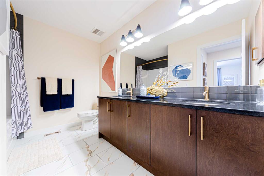 ** Brand New Genesis Home** Welcome home to the Calaria II designed and built by Genesis Homes. This thoughtfully designed home features a main level bedroom & 4pc bath, spice kitchen, an incredible open floor plan with high ceilings, dual primary bedrooms, an upper level loft and more! Boasting 2,550 square feet between the main and upper levels this home is full of living space. Step inside the front door to a wide foyer with open to below ceilings. The main level is masterfully curated for the style and comfort with two living rooms; the first is a formal living room has a stunning open-to-below ceiling complimenting the vast size of this home. The formal living room blends seamlessly into the dedicated dining room. Move further inside and experience a home made for entertainment; an open floor plan chef inspired kitchen and great room. The kitchen is outfitted with sparkling quartz countertops, ample cabinet storage, a gas line and a stainless steel builders appliance package. Keep this kitchen sparkling and use the spice kitchen! The centre island in the kitchen is equipped with a barstool seating area making it the perfect space to enjoy small meals and socialize while you cook. The great room is centered with a 50" electric fireplace and also had a door that leads to your rear deck with a BBQ gas line. The main level is outfitted with large windows bellowing in an abundance of natural light. This level is paired with a bedroom and 4pc bath with a tub/shower combo providing you with space for overnight guests or multigenerational living. Walk up the plush carpet staircase with a spindle railing to your upper level oasis. Upstairs holds 4 bedrooms- 2 primary and 2 additional bedrooms! The first primary bedroom opens with french doors to a vaulted ceiling expansive retreat. This primary is paired with a walk-in closet and 4pc ensuite bath. Primary 2 also does not disappoint; a deep walk-in closet and private 4pc ensuite bath with walk-in shower, private washing closet and double vanity. Bedrooms 3 & 4 upstairs share the 4pc bath with a tub/shower combo. The upper level loft is a treat; relax and unwind here with your family in the evenings. The walk-in laundry room is near all the bedrooms is every home owner's dream. The unfinished basement comes with a separate entrance making your future development plans flexible. This home is within walking distance to parks, amenities and future CBE schools! Ready for August-September of 2026, Hurry and book a showing at this gorgeous Genesis home today! **Photos are representative of the Calaria II show home in Logan Landing. Finishes may differ**