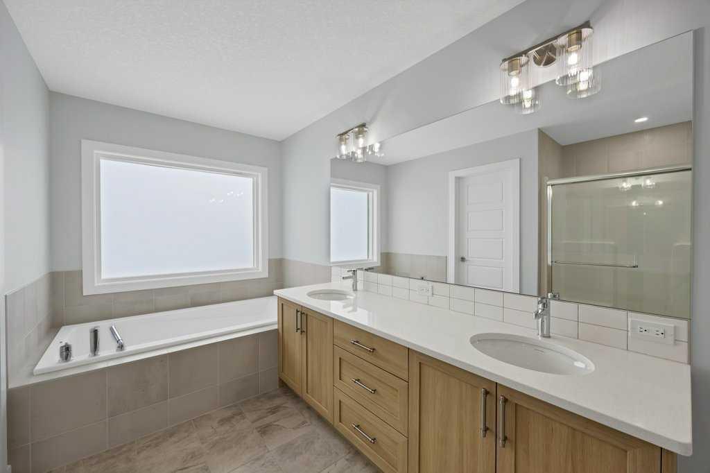 Welcome to this exceptionally spacious and thoughtfully designed home in the vibrant community of Homestead Gardens NE. Offering over 2,540 sq. ft. of total exterior area featuring a SPICE Kitchen, Bedroom and a full bathroom at the main floor, 2 living area, 2 Primary bedrooms upstairs, a bonus area, longer backyard and this property provides an ideal layout for large families, multi-generational living, or anyone seeking abundant living space with modern convenience. The main floor features a bright and open plan with multiple functional areas. At the front of the home, a large living room welcomes you with excellent natural light, leading to a well-sized main-floor bedroom—perfect for guests, extended family, or a private office. A full 4-piece bathroom is conveniently located nearby. The heart of the home includes a spacious kitchen with generous prep and storage space, a second spice/prep kitchen for added convenience, and a central family room designed for everyday relaxation. The adjoining dining area offers a comfortable space for family meals and gatherings. A large hallway and functional foyer complete this level. The attached double garage provides secure parking with direct access into the home. The upper level is thoughtfully designed to accommodate family living, featuring four bedrooms, an additional bonus room, and a full laundry room. The expansive primary suite includes a generous bedroom, a private 5-piece ensuite, and a walk-in closet. A second bedroom also enjoys its own 4-piece ensuite and walk-in closet—an excellent feature for growing families. Two additional bedrooms share access to a full bathroom located just down the hall. A spacious bonus room separates the primary wing from the secondary bedrooms, creating privacy and versatile living options such as a media room, study space, or play area. The dedicated laundry room on this floor adds everyday convenience. With a total of five bedrooms above grade, multiple living areas, and a family-oriented layout, this home offers exceptional comfort, flexibility, and room to grow. Basement comes with a side entrance, 9 ft ceiling, 2 large egress windows, tankless hot water and a lot more. Located in an emerging community with parks, pathways, future amenities, and easy access to major routes, this property provides outstanding value and functionality.