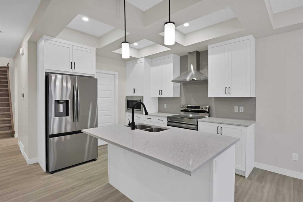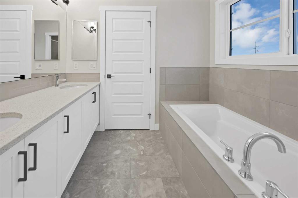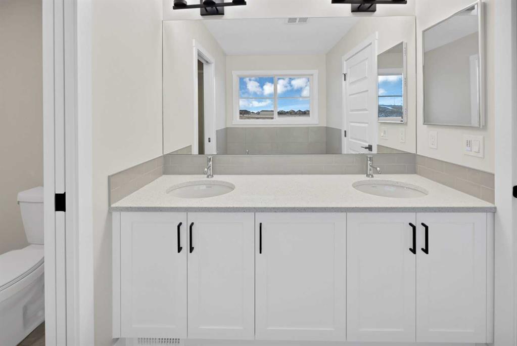 Welcome to this Brand new front-garage home located in the Homestead community (NE). This property features an extended driveway and a spacious garage that can accommodate up to three vehicles. With no neighbors behind, you’ll enjoy exceptional privacy. The home offers 6 bedrooms total, and 4 full bathrooms including a main-floor bedroom with a full bathroom—perfect for guests or multigenerational living. The kitchen is equipped with stainless steel appliances and an electric stove, with a gas line already installed should you prefer to switch. A SPICE KITCHEN provides additional storage with plenty of cabinetry. The main kitchen includes a quartz countertop, a coffered ceiling, and the dining area features a tray ceiling along with extra windows that fill the space with natural light. The open-to-below layout enhances the spacious feel, and the upper level includes a generous bonus room. One of the secondary bedrooms is oversized with a walk-in closet, the other is well-sized, and the primary bedroom offers double-door entry, a walk-in closet, and a luxurious 5-piece ensuite. Large windows throughout the home provide abundant sunlight, with an east-facing front and west-facing backyard for optimal daylight exposure. The 2-bedroom illegal basement suite includes a separate side entrance, its own living area, kitchen, full bathroom, two bedrooms, and separate laundry—ideal for extended family. Don’t miss this opportunity to own a brand new home on a rare, oversized lot. Some photos are virtually staged. Book your showing today!
